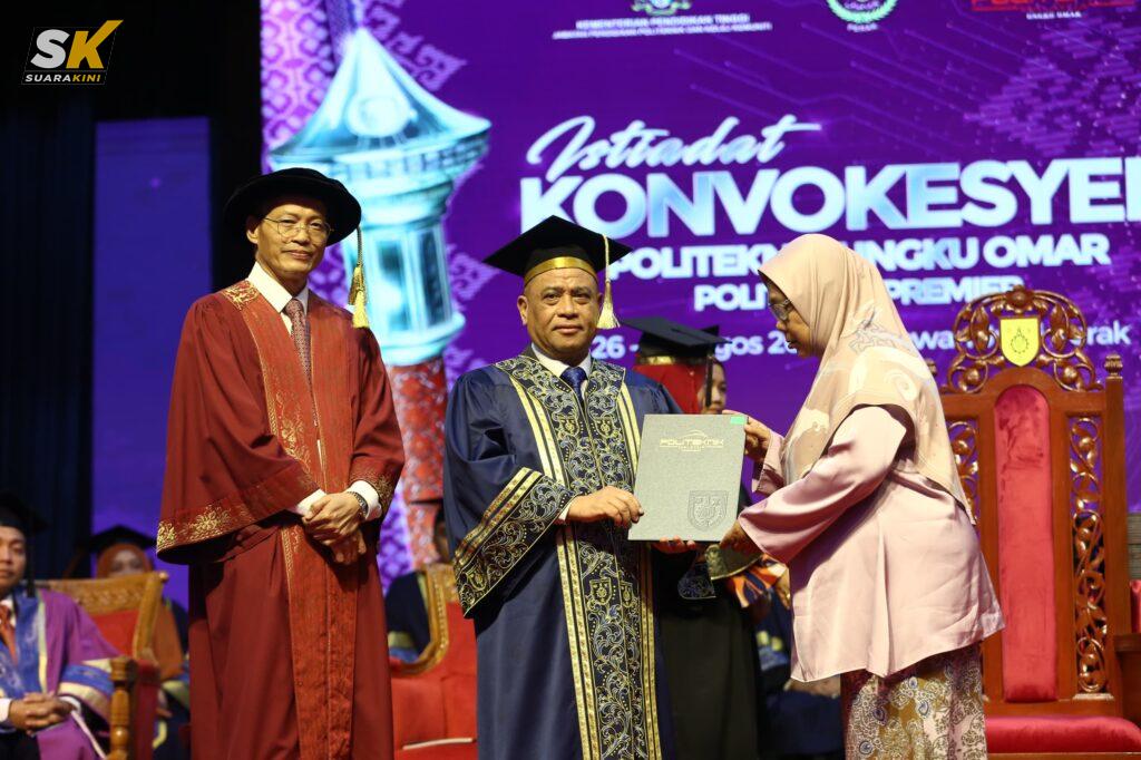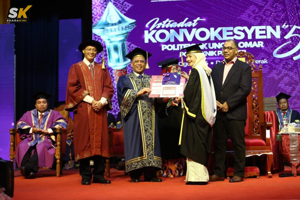 Sidang Pertama Istiadat Konvokesyen Politeknik Ungku Omar Ke-52 disempurnakan Menteri Besar, Datuk Seri Saarani Mohamad.