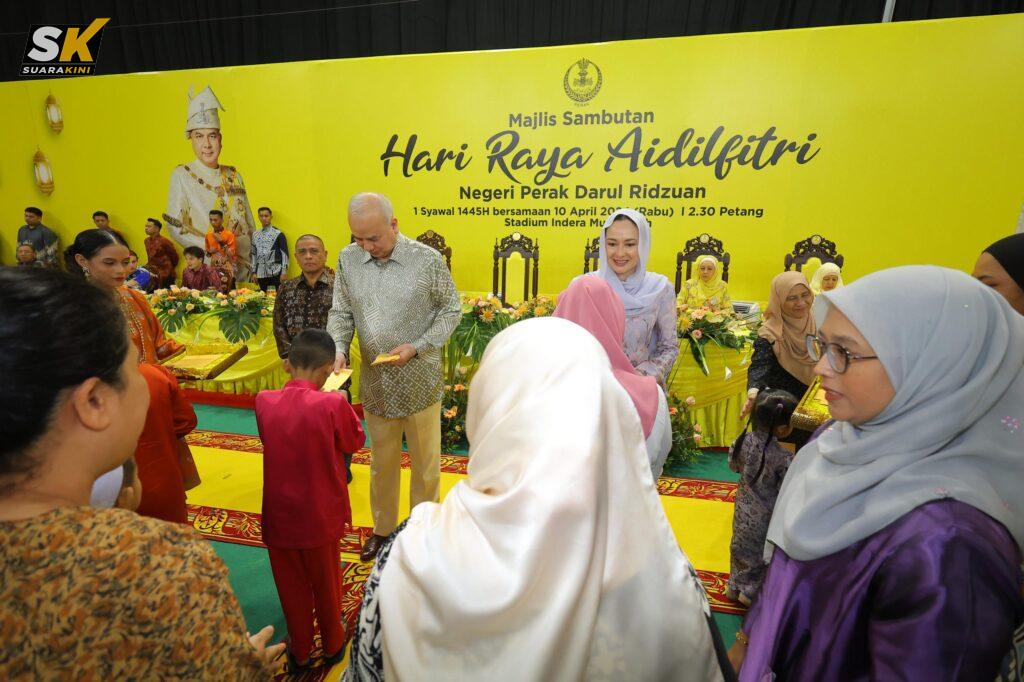 Pada majlis itu, Sultan Nazrin dan Tuanku Zara turut menyampaikan duit raya kepada penghuni beberapa rumah anak yatim dan pusat jagaan.