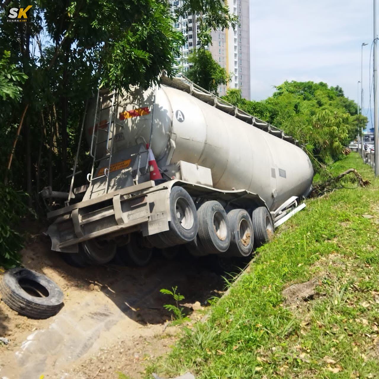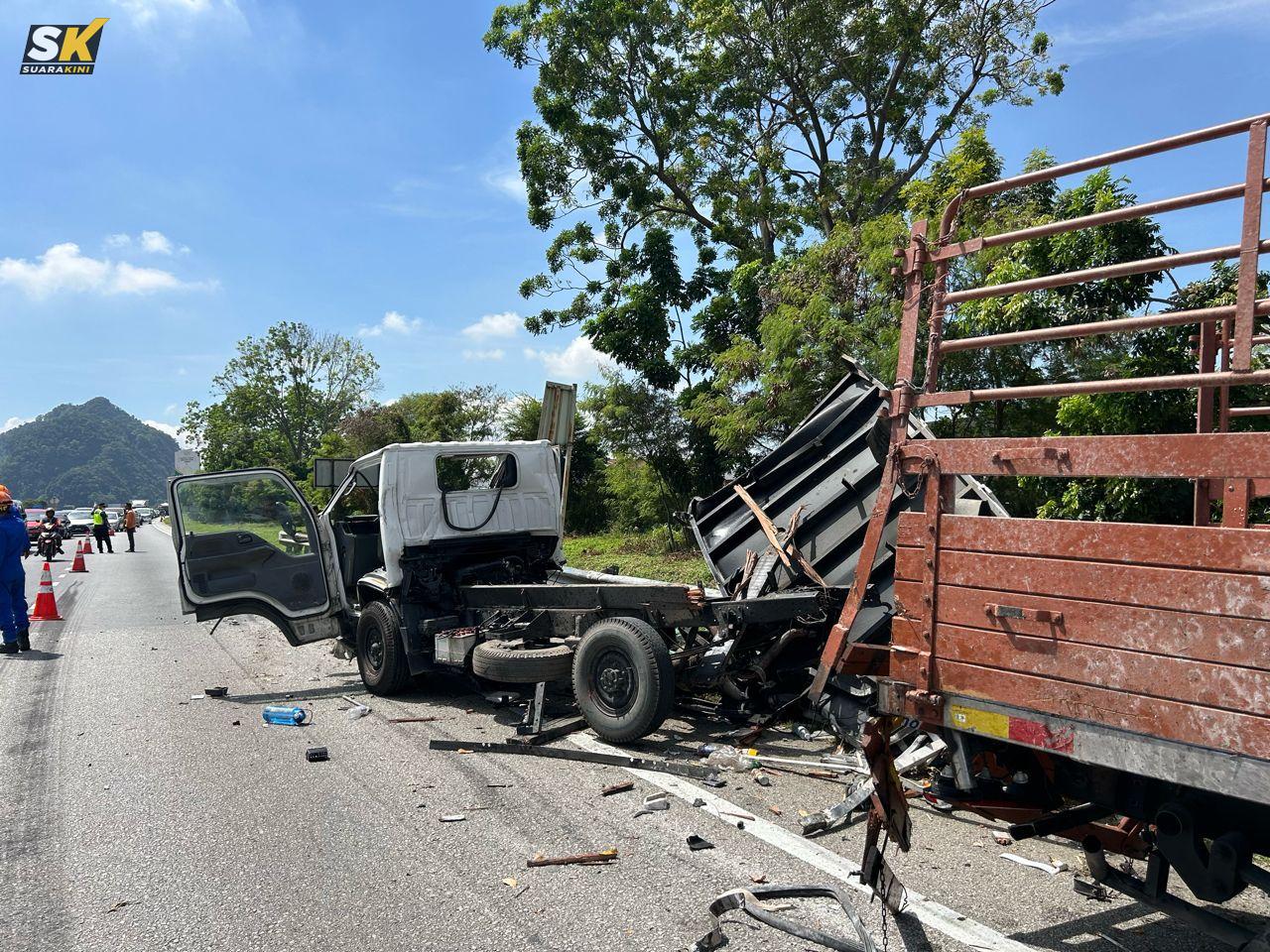 “Kemalangan melibatkan sebuah lori tangki simen melanggar dua lori 1 tan PROPEL.