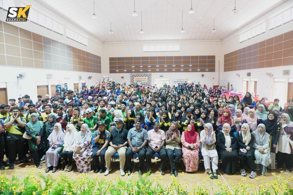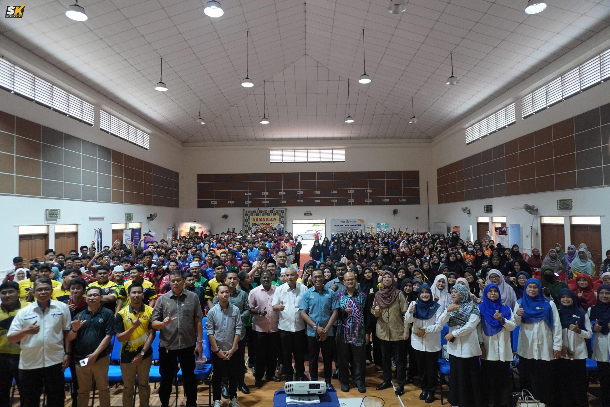 LENGGONG: Seramai 600 pelajar daripada 15 buah sekolah di Hulu Perak menyertai program Jelajah AIM TVET Bersama Cikgu Saarani di Dewan Bestari Sekolah Menengah Kebangsaan Dato’ Ahmad, Lenggong, baru-baru ini.
