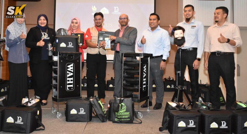 Pada majlis itu, Rohizan menyampaikan kit permulaan perniagaan kursus gunting rambut lelaki dan wanita bernilai RM5,000.