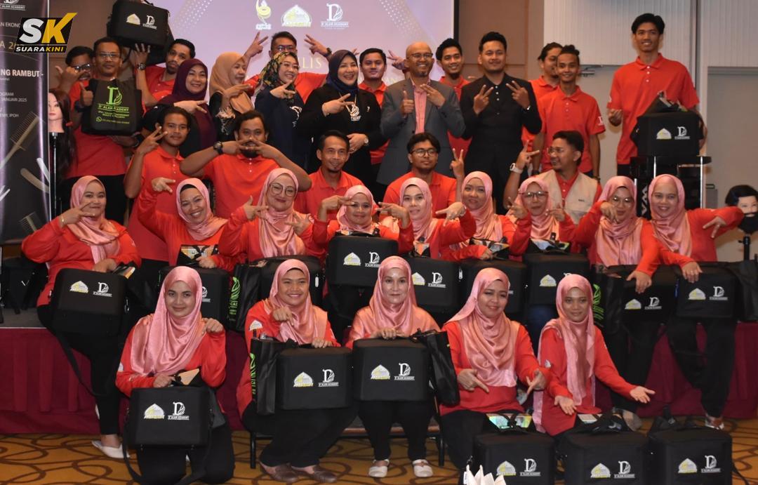 Pada majlis itu, Rohizan menyampaikan kit permulaan perniagaan kursus gunting rambut lelaki dan wanita bernilai RM5,000.