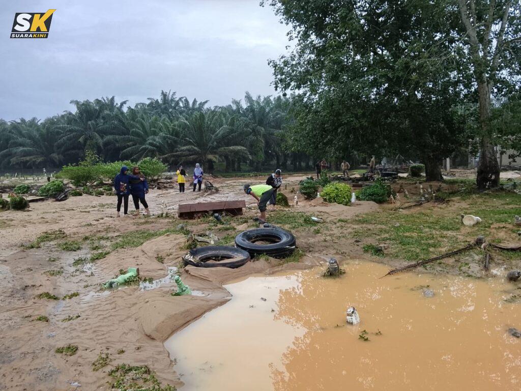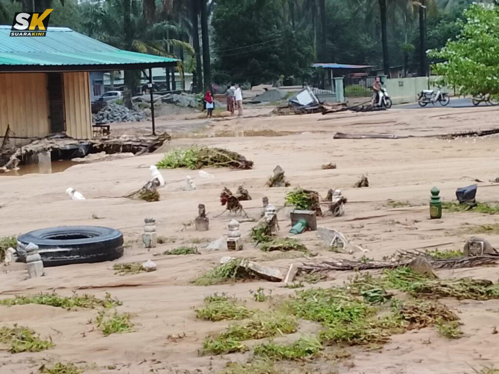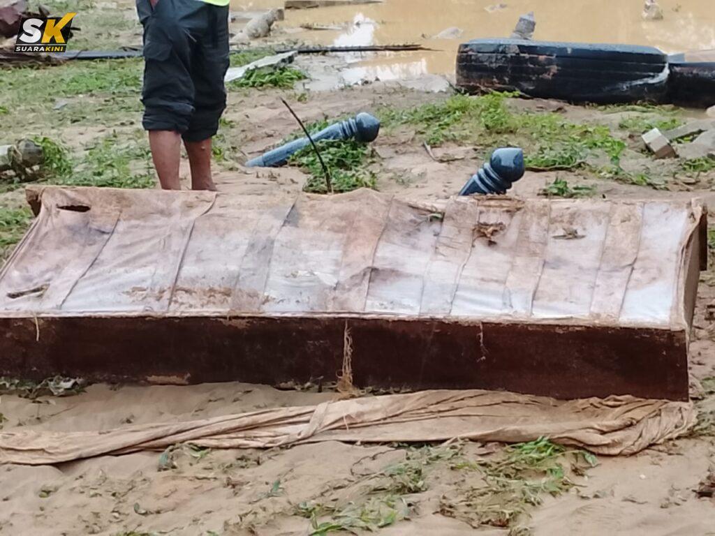 Seorang penduduk, Mohd Ridwan Abdul Karim, 37, arus deras turut menyebabkan sebuah keranda kayu menempatkan jenazah yang dikebumikan kira-kira sebulan lalu timbul.