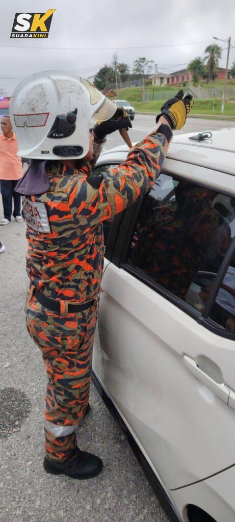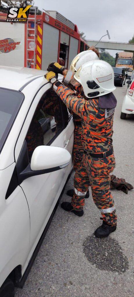 “Bomba kemudiannya memakai pakaian lengkap dan membuka kereta tersebut dengan peralatan khas.