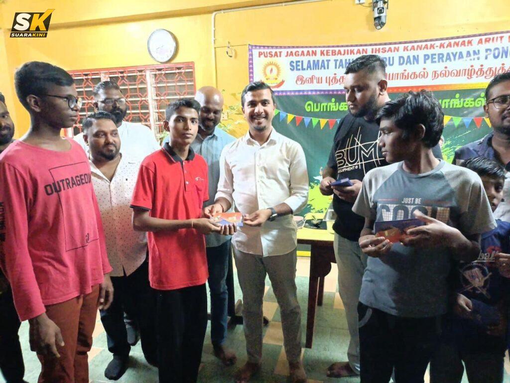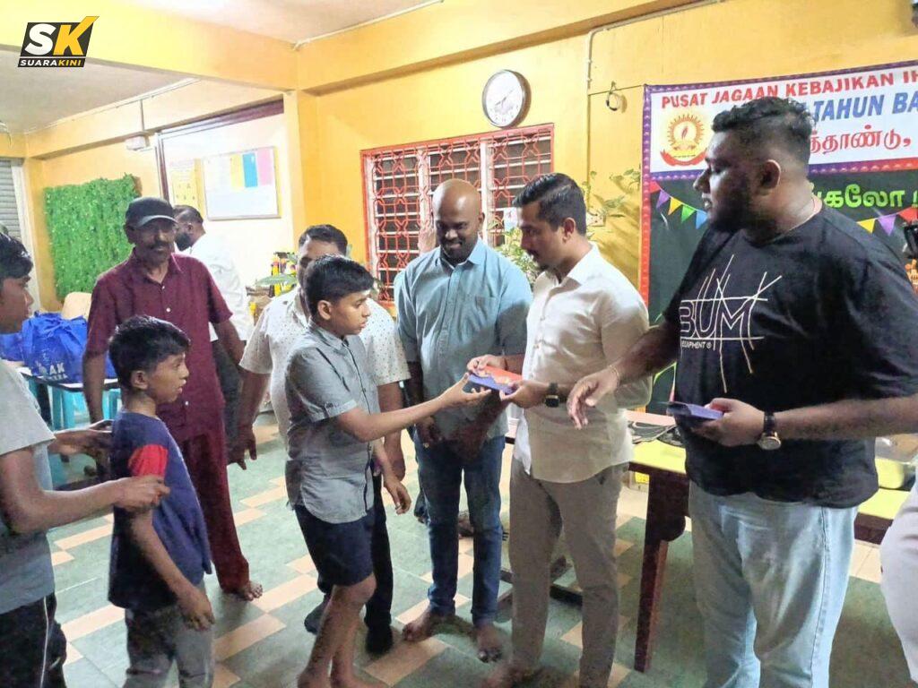 Dalam kunjungan itu, Theeageesh turut beramah mesra bersama kanak-kanak dan penjaga di rumah amal berkenaan.