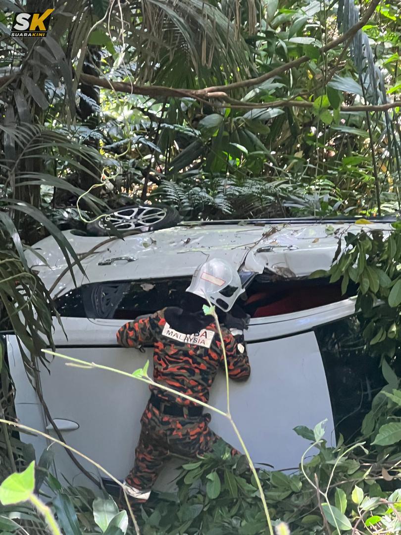 TAPAH: Dua orang cedera setelah kenderaan jenis Perodua Myvi yang dinaiki mereka dipercayai terbabas lalu jatuh ke dalam gaung di Batu 7, Jalan Pahang, di sini hari ini.