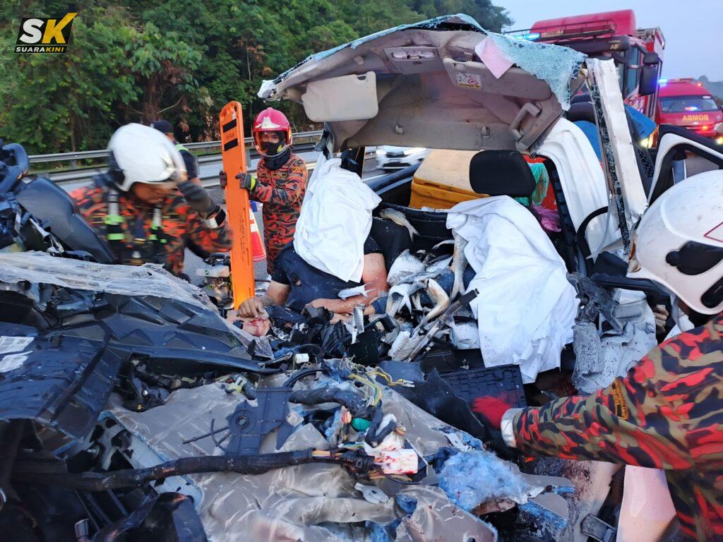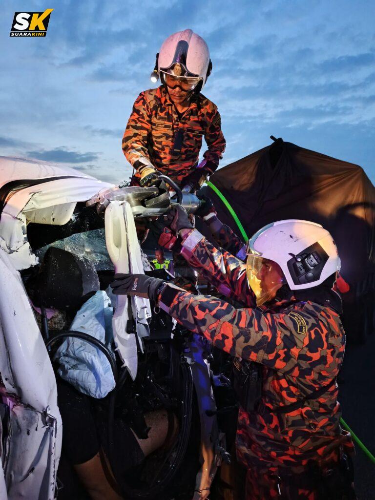 “Setibanya jentera di tempat kejadian, didapati terdapat dua orang mangsa lelaki dari pacuan empat roda itu telah tersepit dan disahkan meninggal dunia di tempat kejadian oleh pasukan perubatan Kementerian Kesihatan Malaysia yang hadir,” katanya dalam kenyataan pada Rabu.