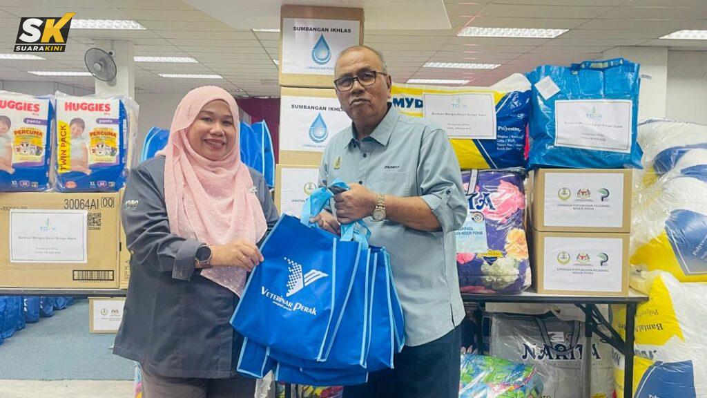 Barangan keperluan seperti toto, selimut, bantal serta makanan itu disumbangkan oleh Jabatan Pertanian Negeri, Lembaga Pertubuhan Peladang dan Lembaga Air Perak.