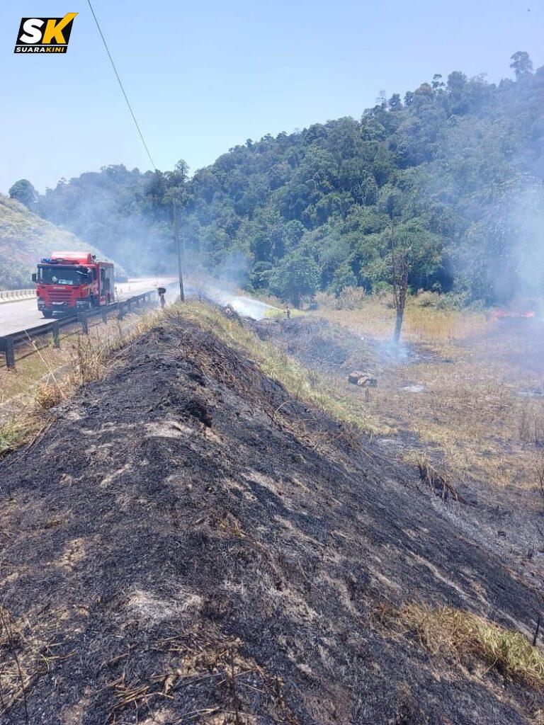 “Setibanya jentera di lokasi kejadian mendapati kebakaran melibatkan lalang di tepi jalan dan hutan di bukit setinggi 700 meter anggaran keluasan 10 ekar.