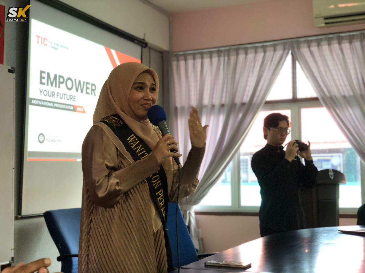 Perkongsian pengalaman dan kisah pahit manis hidup disampaikan oleh Ikon Wanita Perak, Tina Tajuddin, yang berinteraksi bersama para pelajar tersebut.