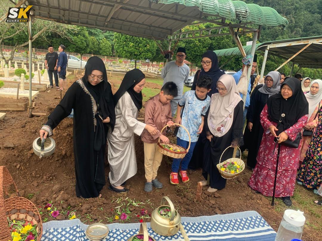 Kira-kira 100 orang ahli keluarga dan sahabat handai, termasuk ADUN Ayer Kuning, Ishsam Shahruddin turut mengiringi jenazah Allahyarham ke tanah perkuburan.