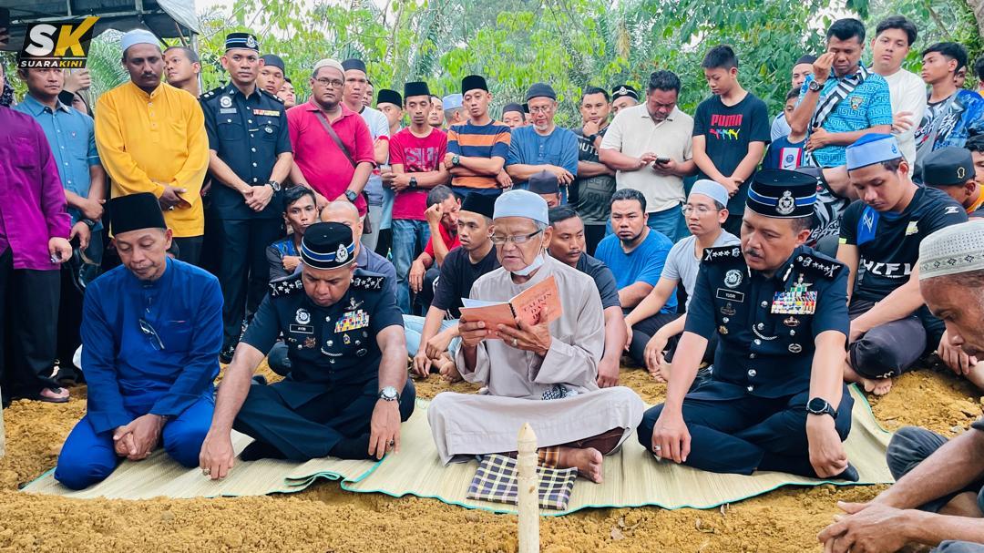 Hampir 1,000 orang, termasuk ahli keluarga, pegawai dan anggota polis serta penduduk kampung, mengiringi perjalanan terakhir Allahyarham Konstabel Ahmad Azza Fahmi.