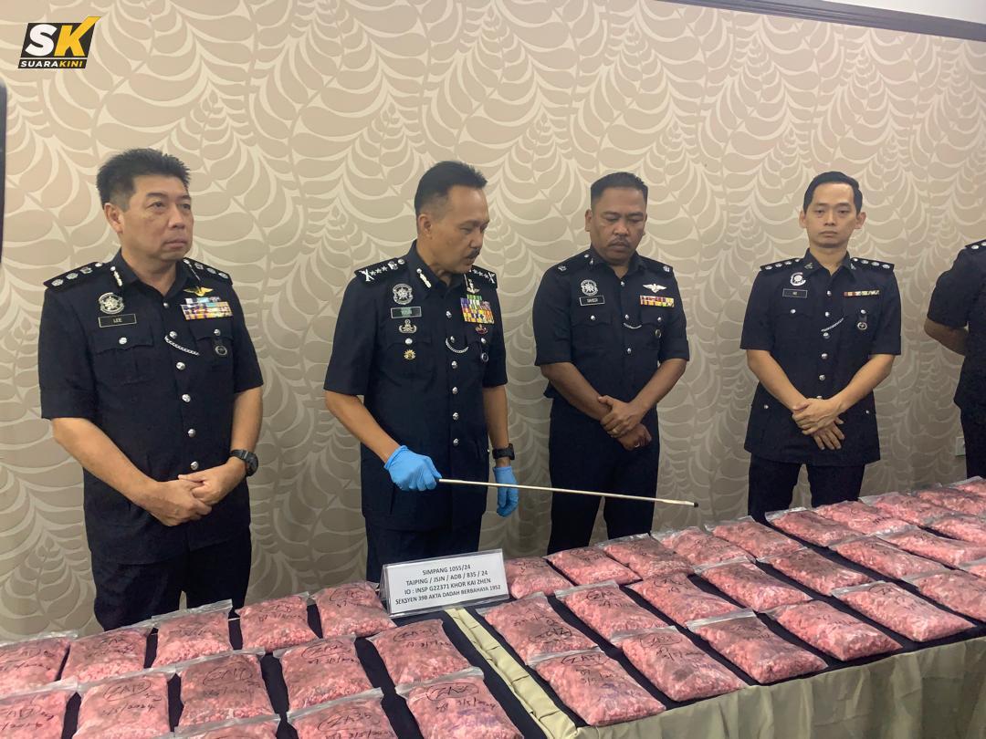 “Selain itu, sebanyak 2.522kg ganja bernilai RM25,220.60 dan 40.911kg heroin (RM634,895.90) dirampas dalam tempoh sama” katanya ketika sidang media di Ibu Pejabat Polis Kontinjen (IPK) Perak di sini, hari ini.