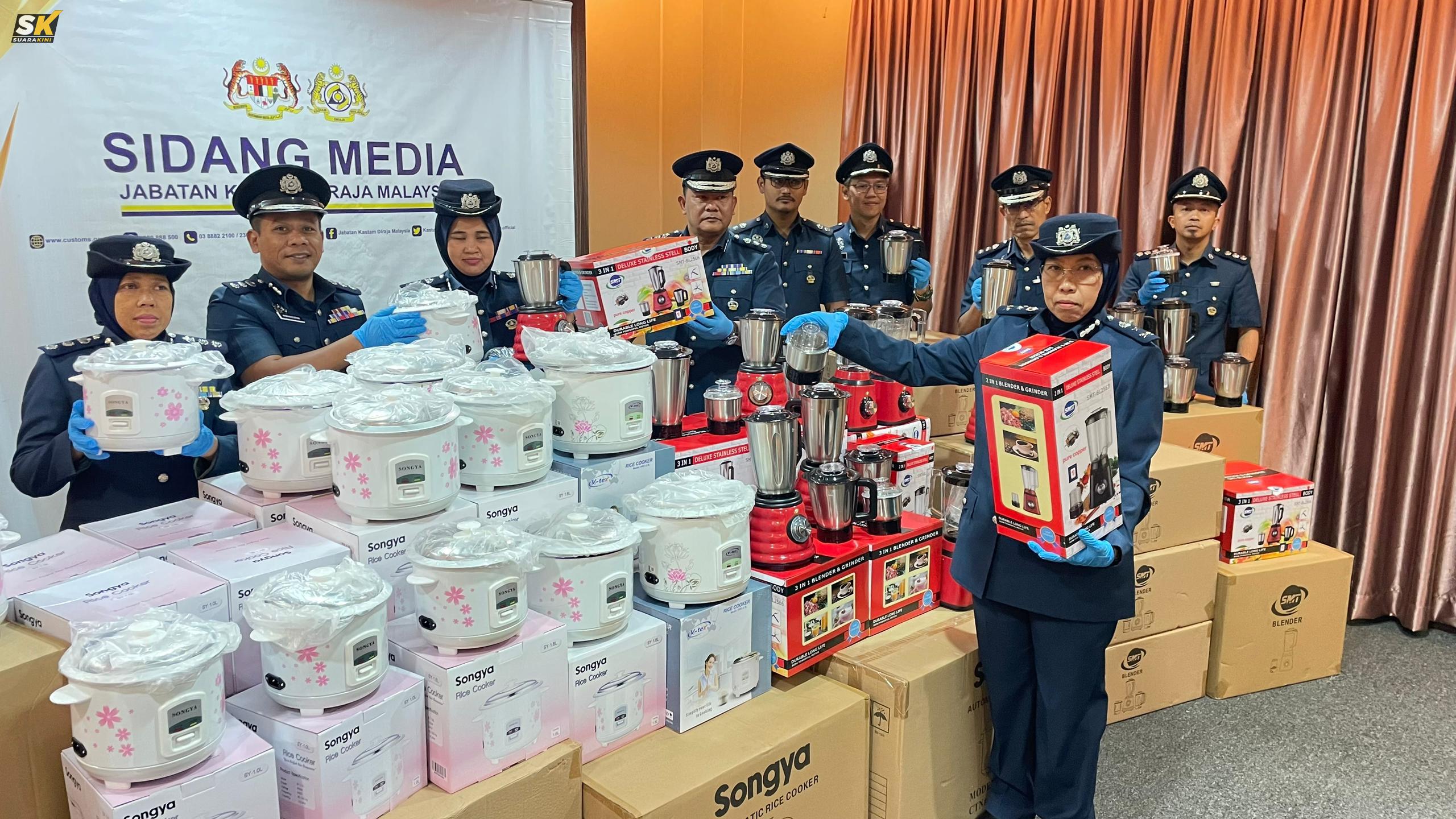 Pemangku Pengarahnya, Suzana Sarif berkata, serbuan pertama kira-kira jam 10.30 pagi, 25 Januari, berjaya menemui 3,954 unit periuk nasi elektrik pelbagai jenama bernilai lebih RM190,000 dengan anggaran duti/cukai lebih RM61,000.