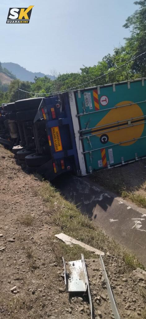 GERIK: Seorang lelaki maut manakala seorang lagi cedera setelah lori kontena yang dinaiki mereka dipercayai terbabas lalu terbalik dalam longkang hari ini.