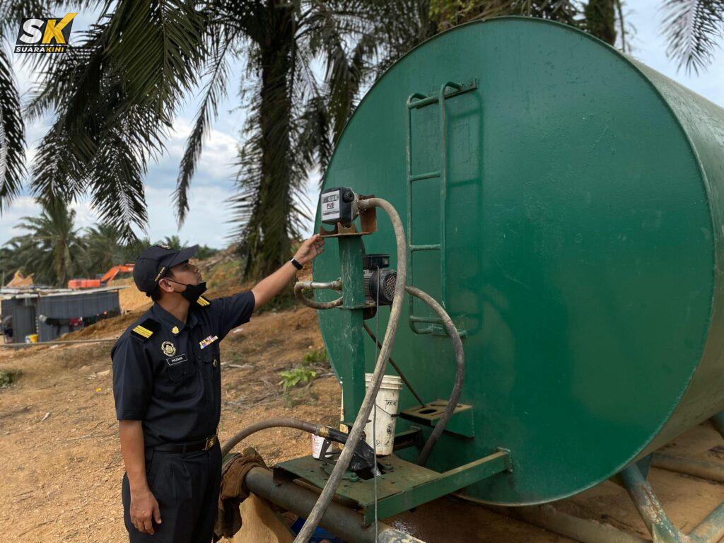 “Pemeriksaan lanjut ke atas sebuah tapak pembinaan tersebut, pasukan serbuan telah menjumpai sebanyak 19,000 liter cecair disyaki minyak diesel di dalam dua buah skid tank.