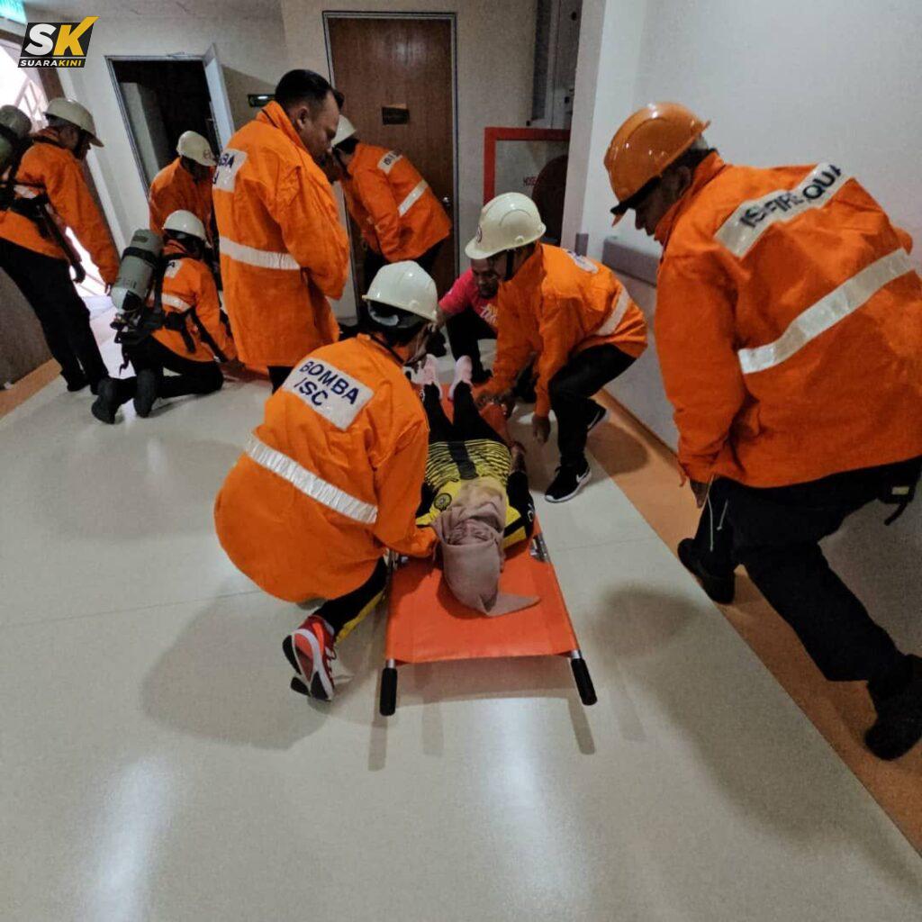 “Menyelamatkan tiga mangsa iaitu seorang staf hospital dan dua anggota keluarga pesakit yang berada di tingkat kebakaran yang disimulasikan dan terjejas oleh letupan,” katanya.