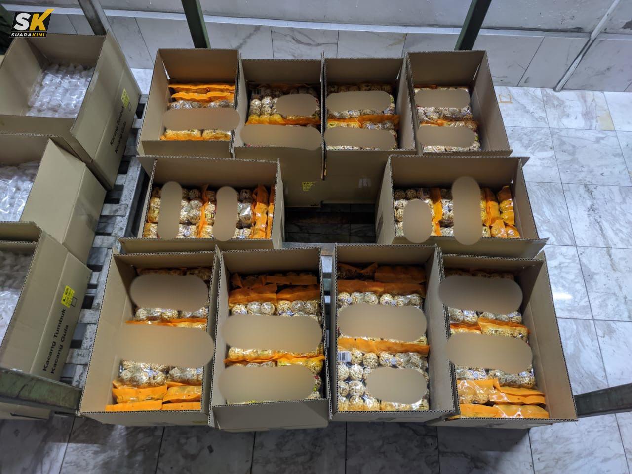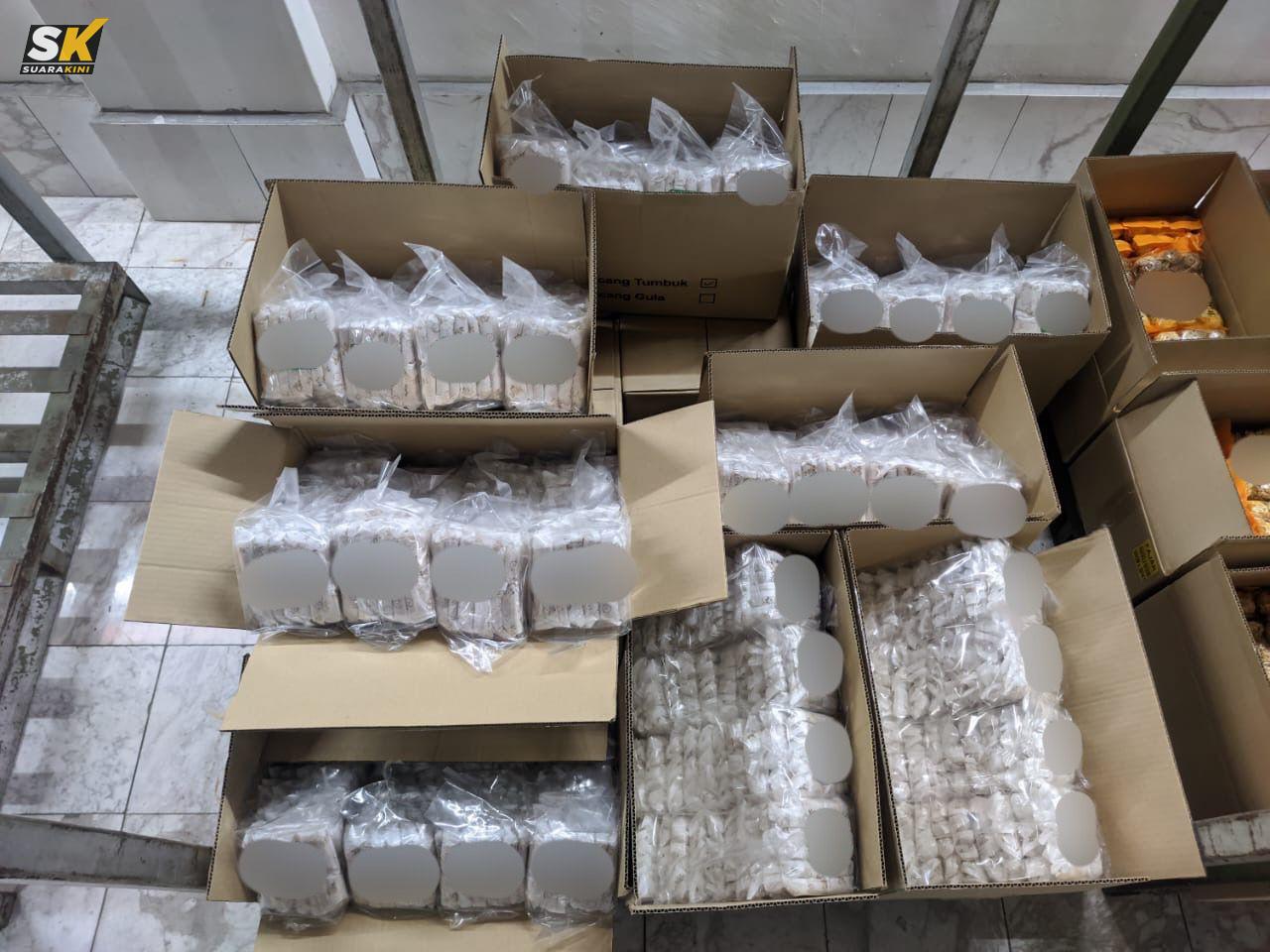 Selain itu, 940 bungkusan biskut pelbagai jenis dan 1,800 pelekat serta bungkusan yang menggunakan logo halal tidak sah telah disita.