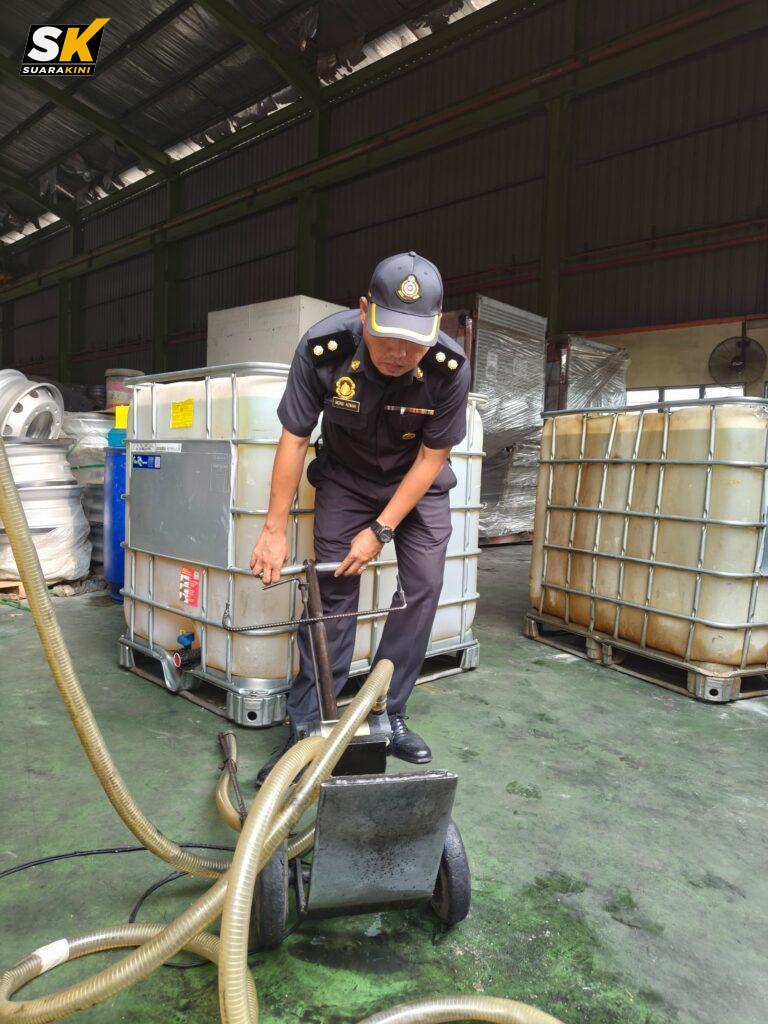 Selain itu, pemeriksaan turut menemui anggaran sebanyak 13,549 liter cecair yang disyaki minyak diesel di dalam tiga tangki IBC dan satu skid tank di dalam kawasan syarikat itu,