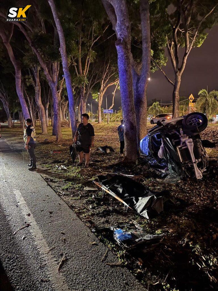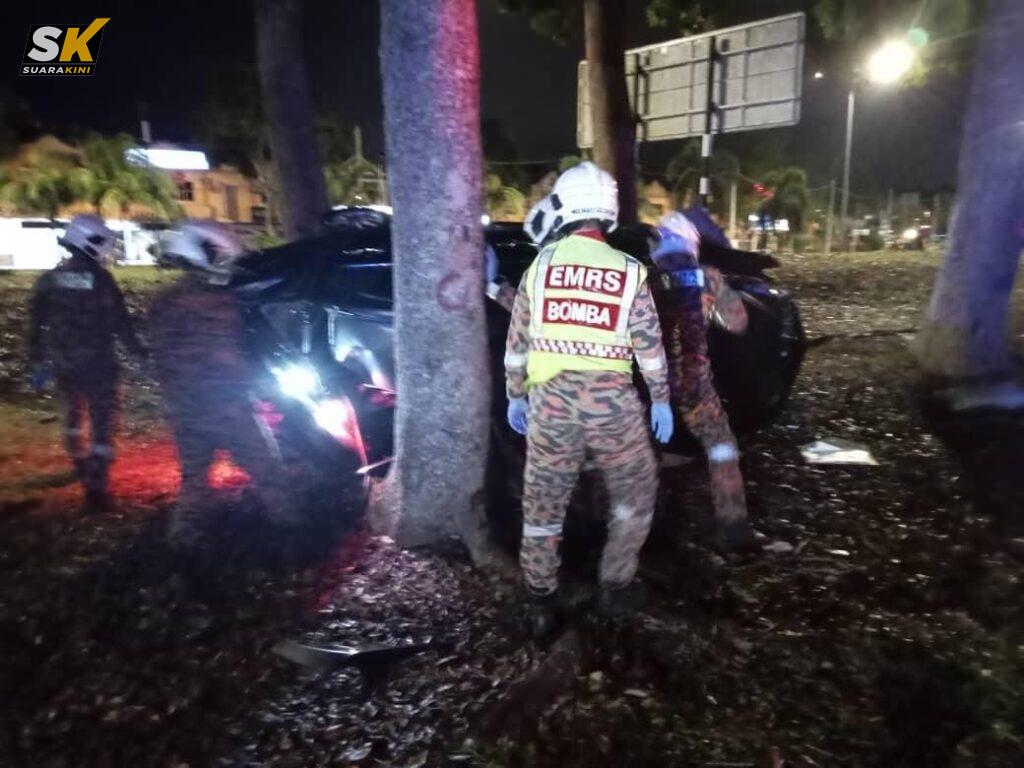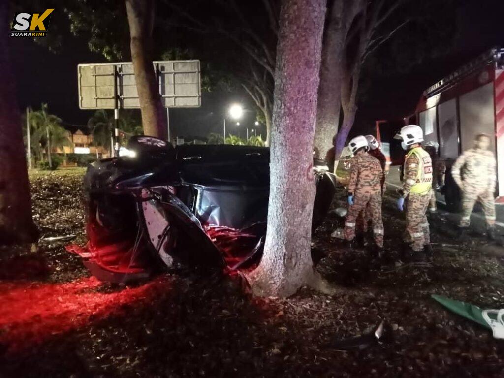 “Kemalangan jalan raya melibatkan sebuah kereta terbabas dan melanggar sebatang pokok.