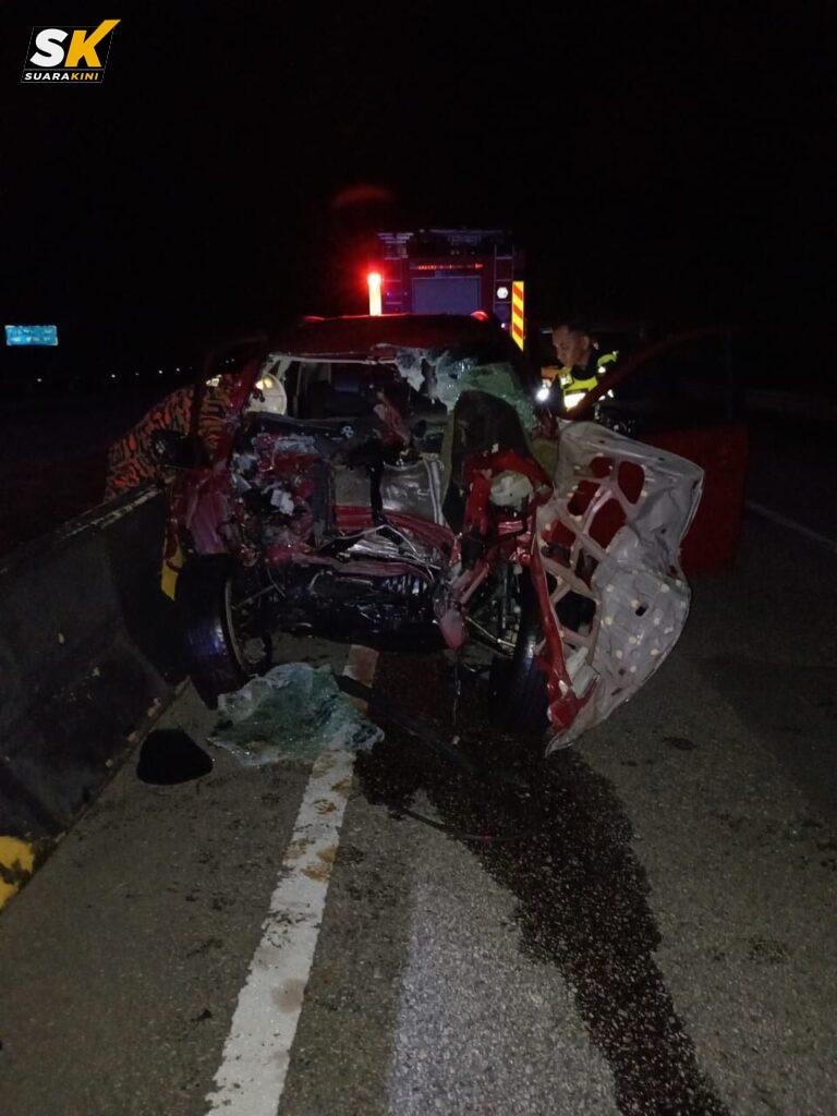 Identiti mangsa dikenali sebagai Syarul Azrin Anuar itu didapati tersepit di bahagian pemandu dan disahkan maut di lokasi kejadian oleh petugas Kementerian Kesihatan Malaysia.