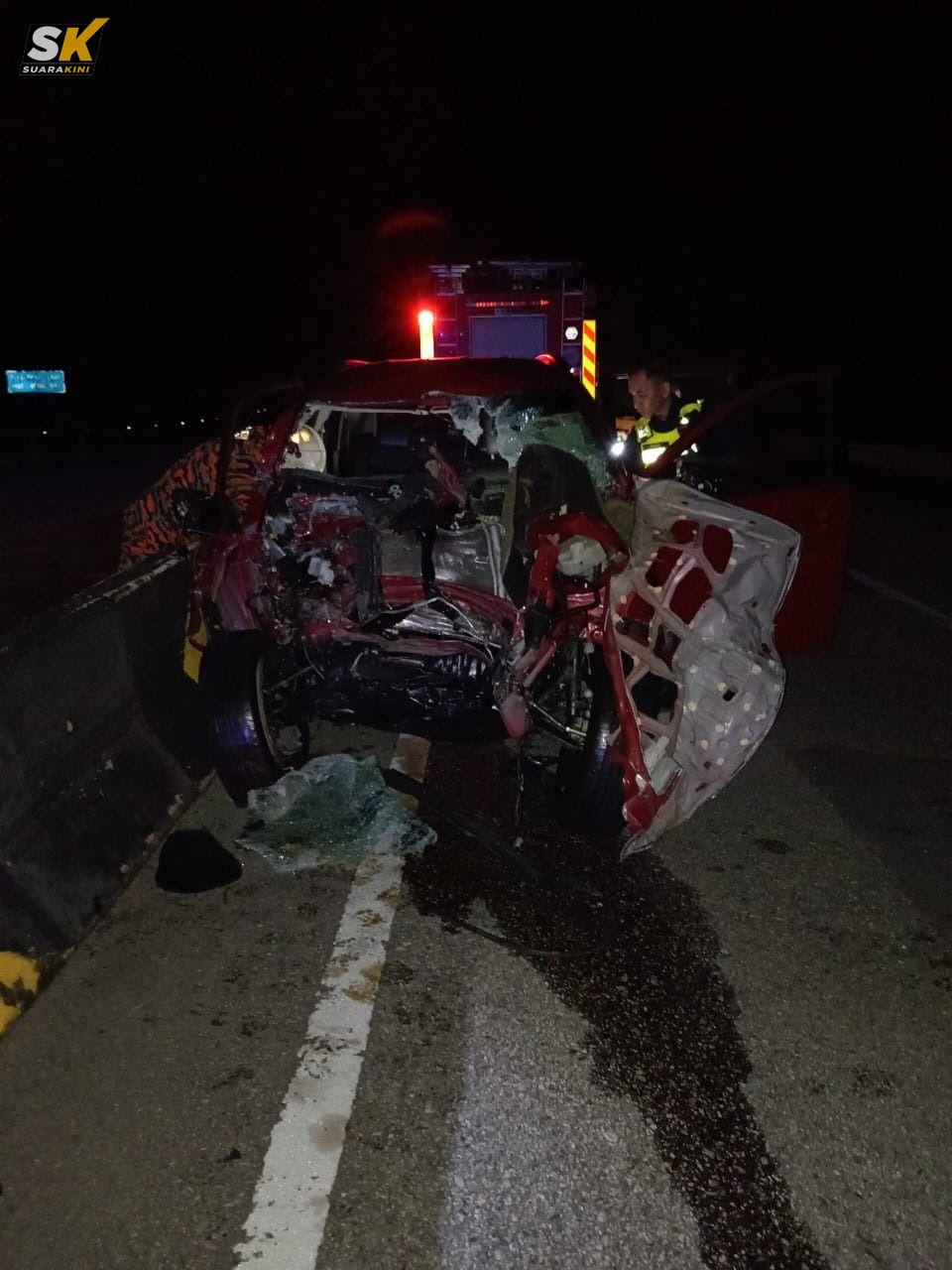 Identiti mangsa dikenali sebagai Syarul Azrin Anuar itu didapati tersepit di bahagian pemandu dan disahkan maut di lokasi kejadian oleh petugas Kementerian Kesihatan Malaysia.