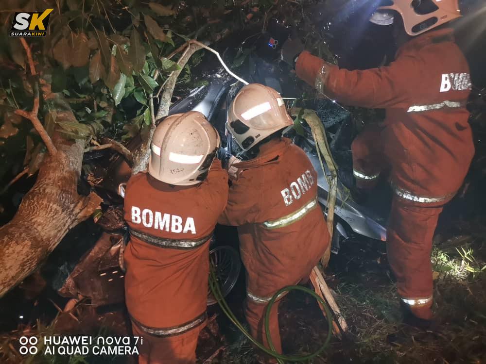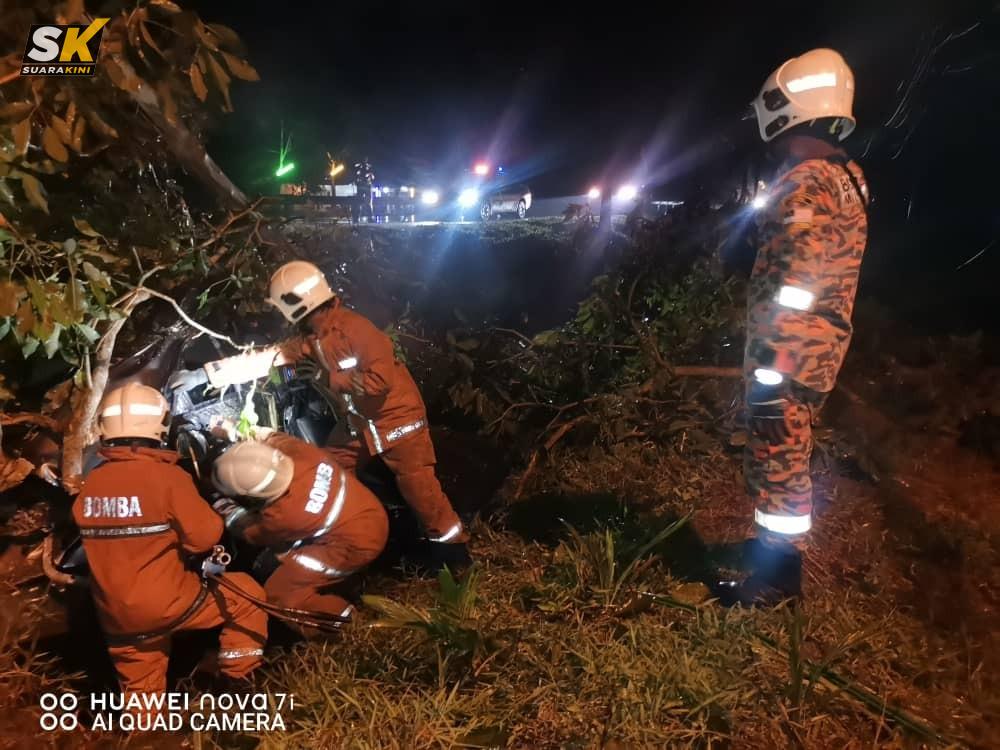 “Kemalangan membabitkan sebuah kereta jenis Kia Spectra yang terbabas di tepi jalan dan melanggar pokok.