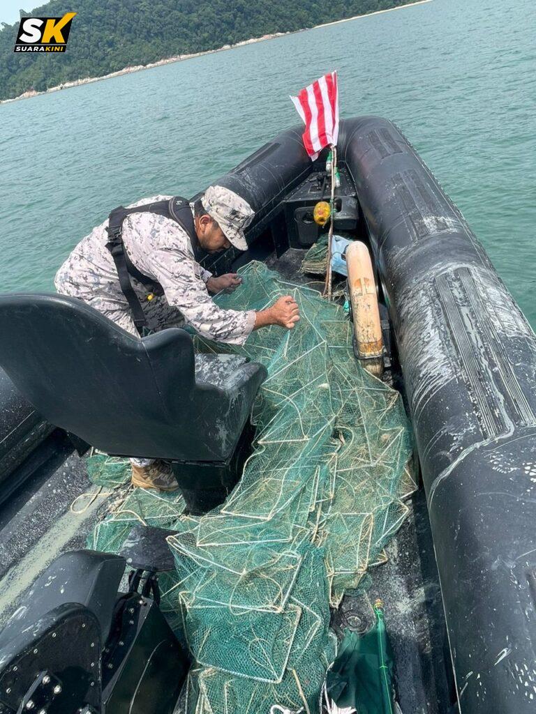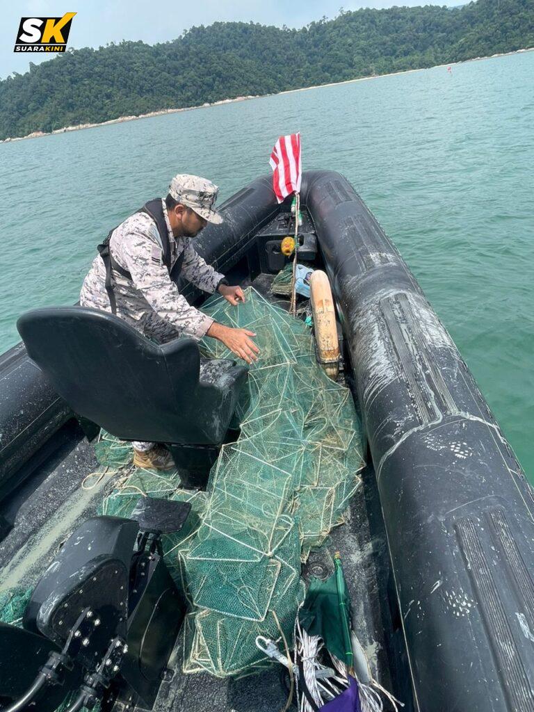 “Pemeriksaan mendapati bendera serta pelampung yang diikat pada pancang kayu berkenaan merupakan penanda kepada bubu naga yang dipasang oleh individu atau kumpulan tidak bertanggungjawab.