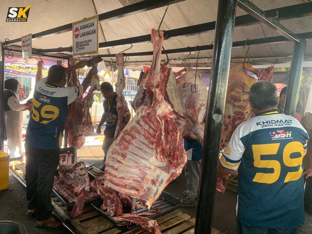 Ketua Jualan Daging, Mohd Zaile Abdullah, pula berkata, mereka memulakan proses jualan sejak jam 5 pagi dan menjelang jam 9.30 pagi, daging tujuh ekor lembu telah habis dijual.
