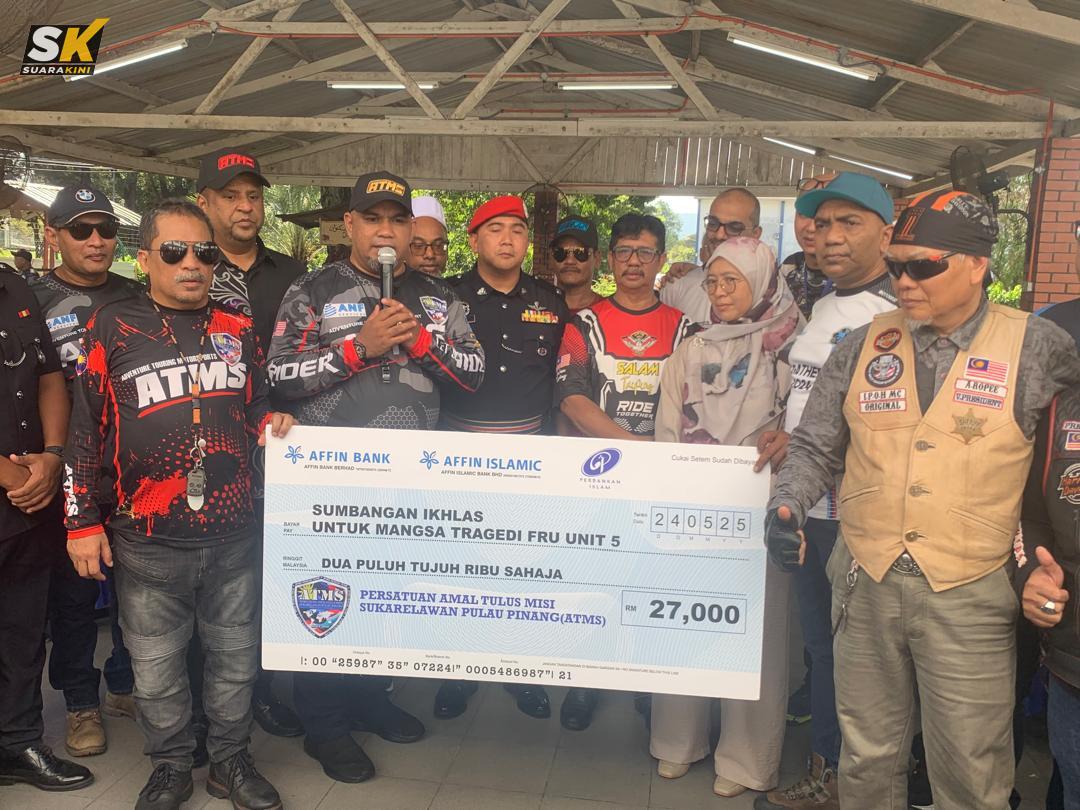 IPOH: Simpati dengan waris anggota Pasukan Simpanan Persekutuan (FRU) yang terkorban dalam nahas di Teluk Intan pada 13 Mei lalu, seramai 200 pemilik motosikal berkuasa tinggi tampil menghulurkan sumbangan RM27,000.