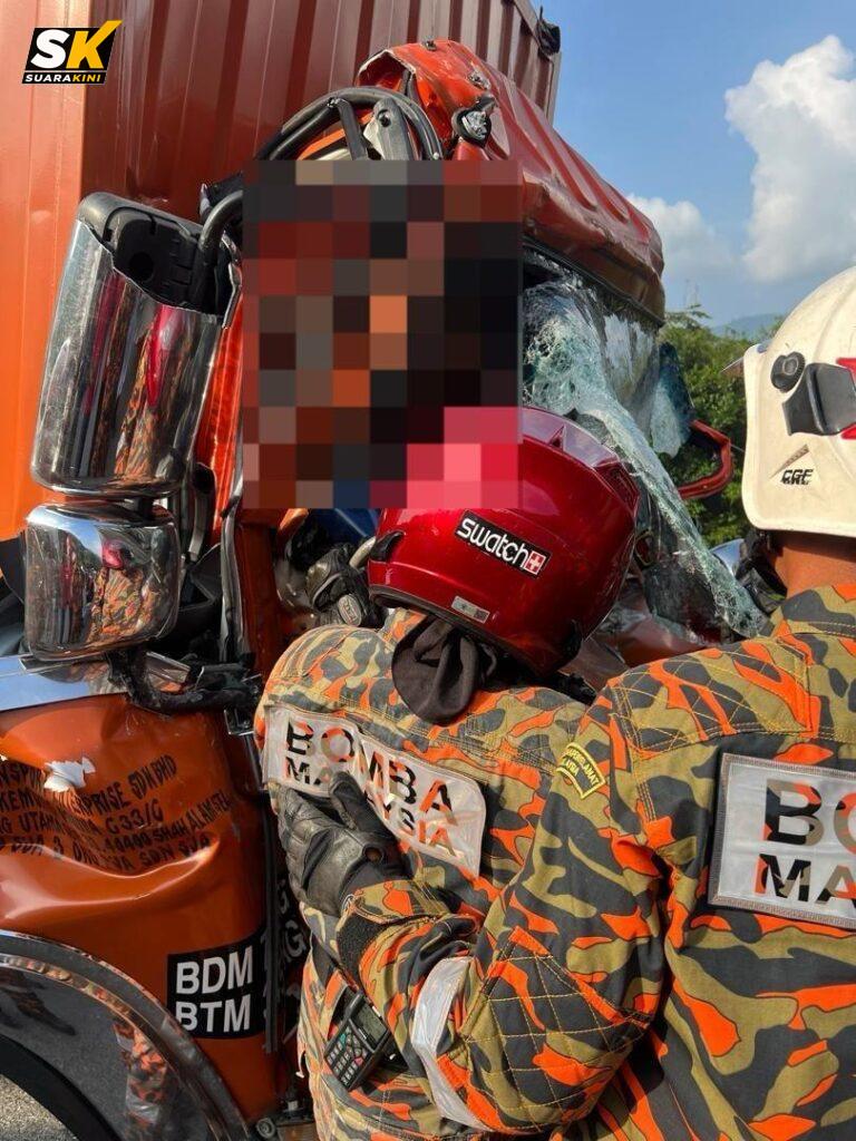 “Kita menemui pemandu lori iaitu lelaki berusia 30 tahun berada dalam keadaan tersepit di tempat duduknya,” katanya dalam satu kenyataan.