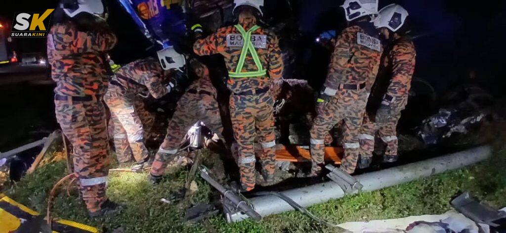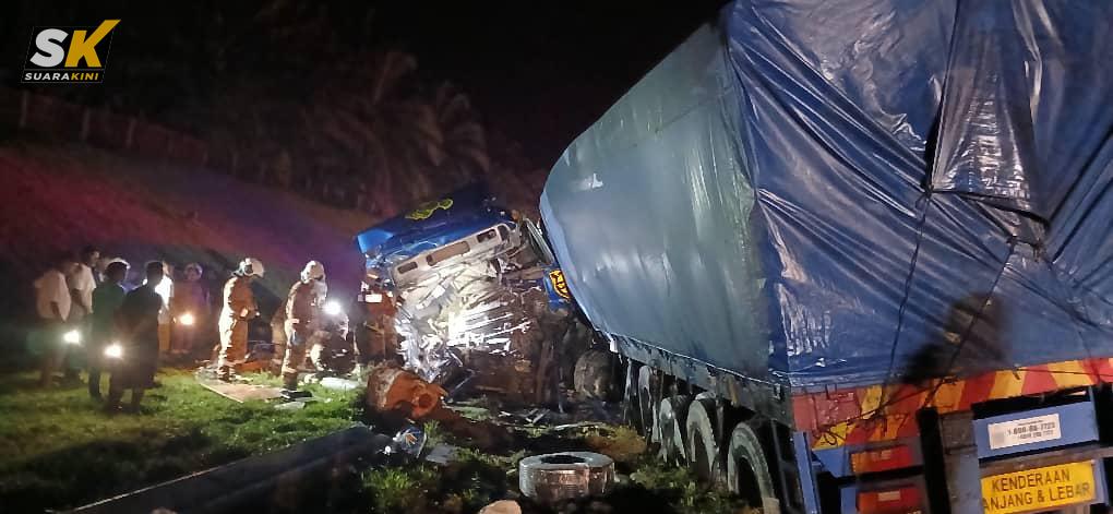 “Setibanya jentera di tempat kejadian, didapati seorang mangsa lelaki berusia 40 tahun tersepit di dalam kepala lori treler dan disahkan meninggal dunia di tempat kejadian oleh petugas perubatan Kementerian Kesihatan Malaysia.
