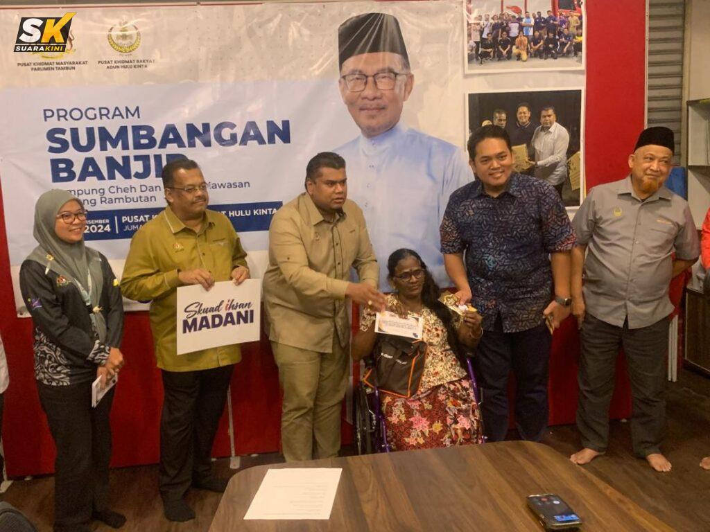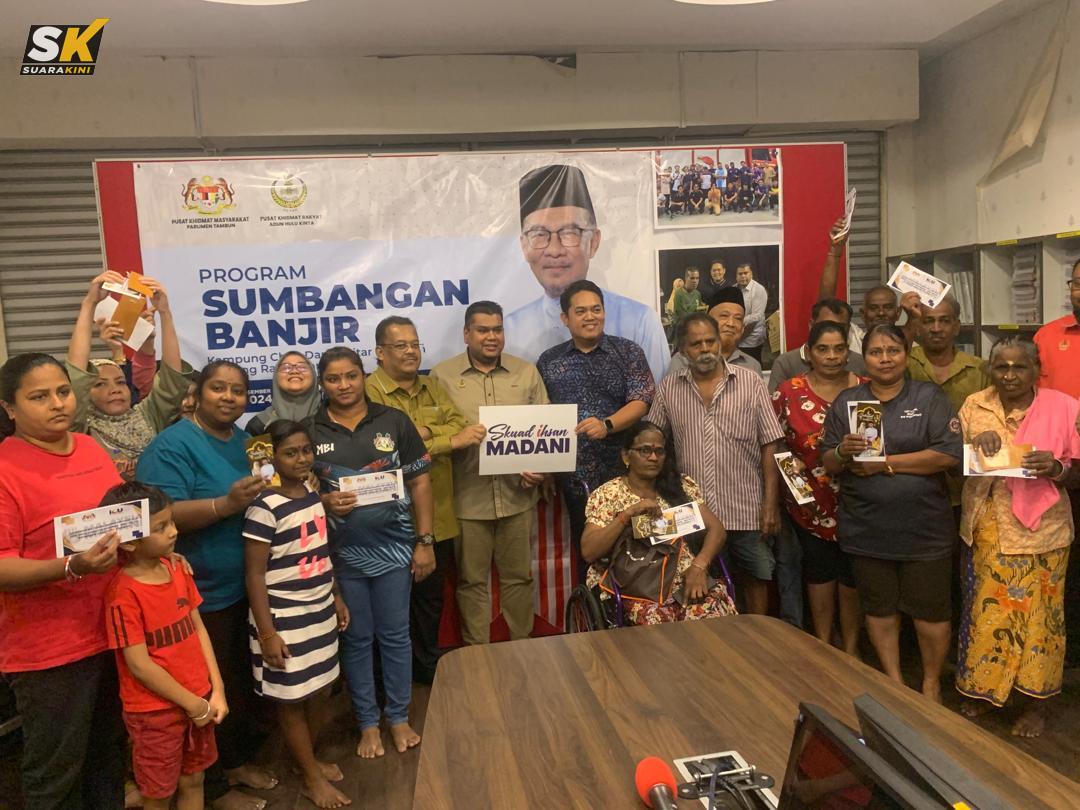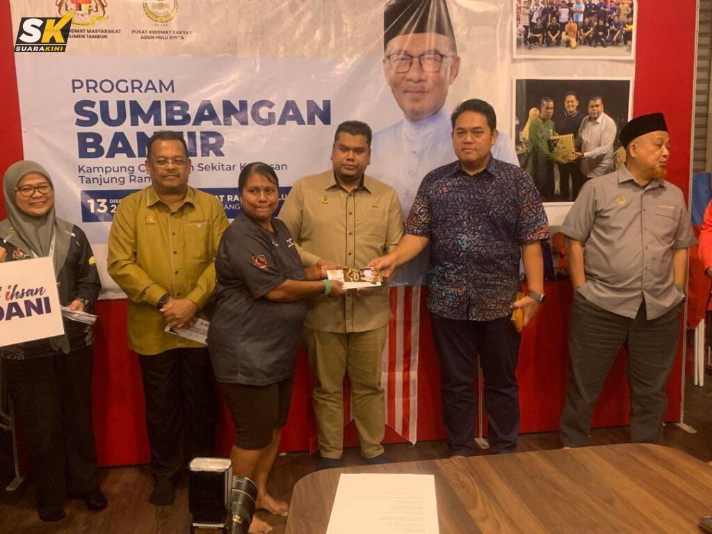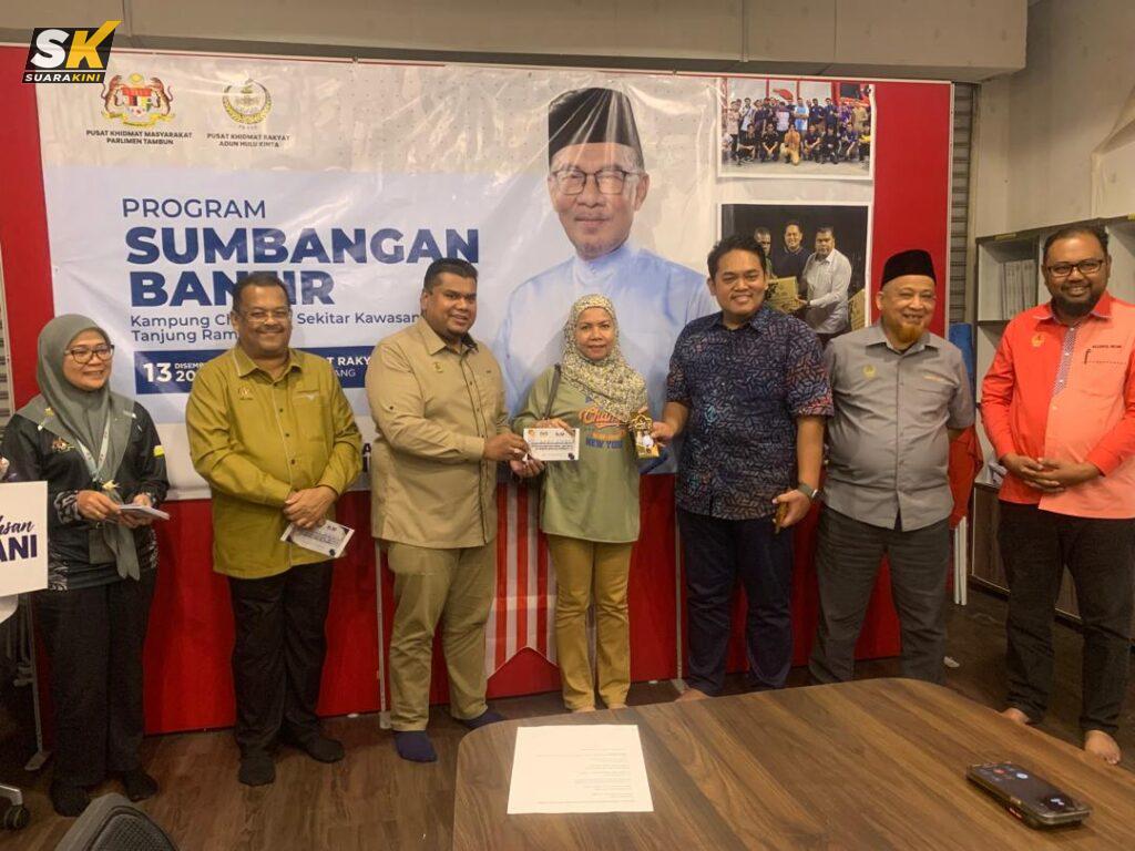 TAMBUN: Perdana Menteri, Datuk Seri Anwar Ibrahim hari ini menghulurkan sumbangan RM1,000 kepada 19 keluarga di Parlimen Tambun yang ditimpa musibah banjir kilat baru-baru ini.