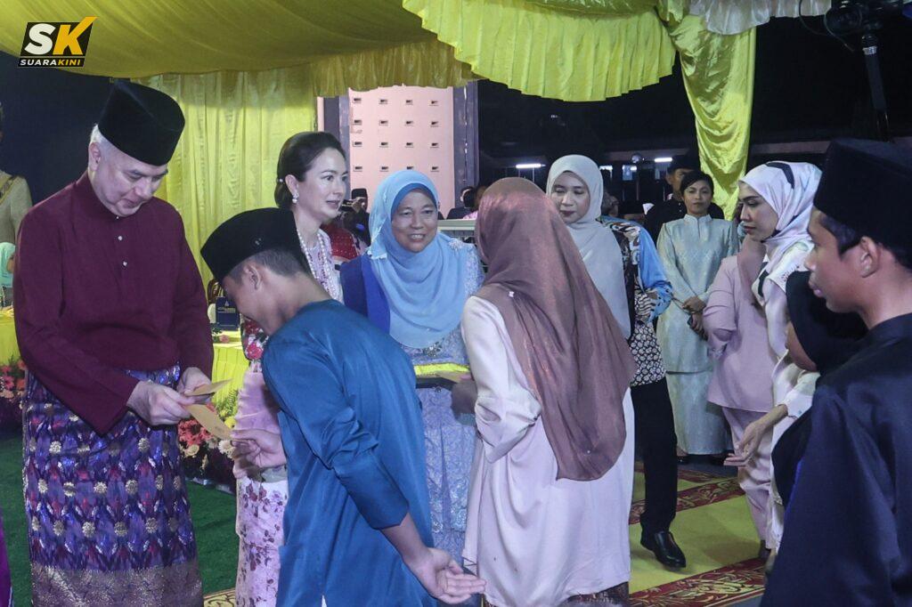 Pada majlis itu, Sultan Nazrin dan Tuanku Zara turut berkenan menyampaikan sumbangan duit raya kepada anak-anak yatim warga PDRM Perak.
