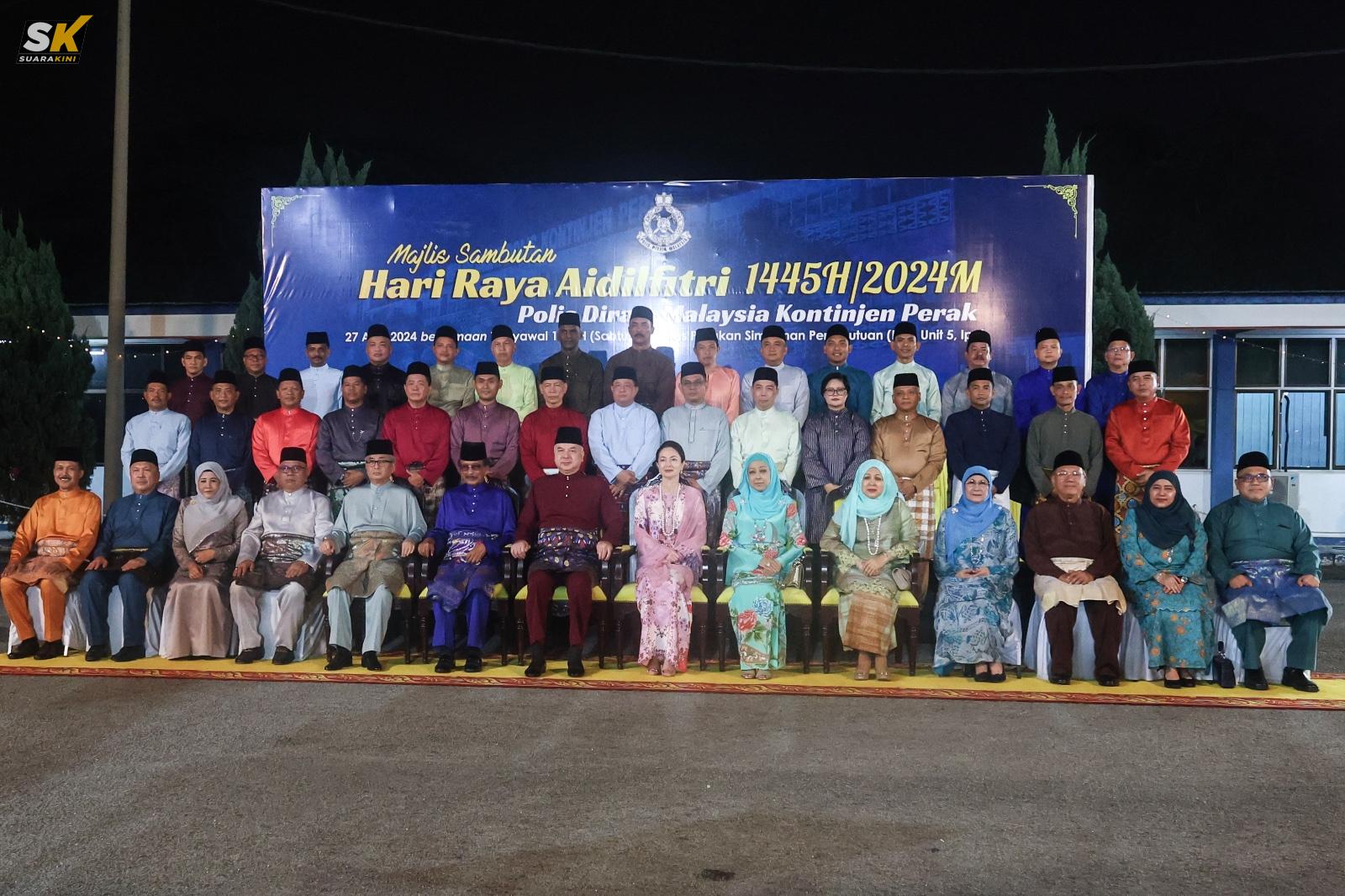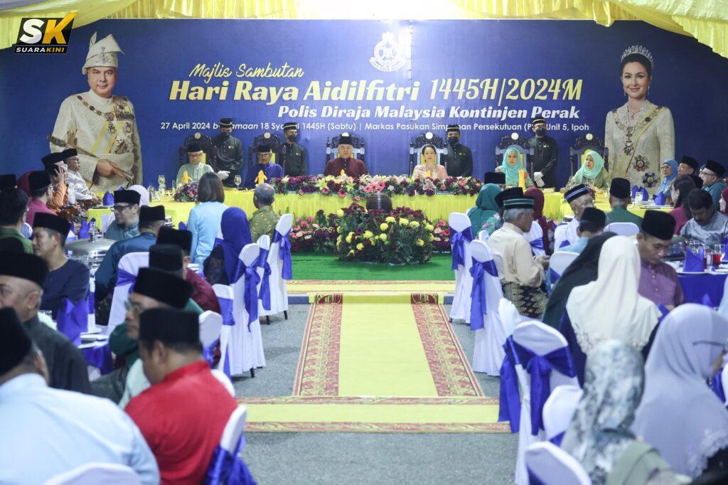 Terdahulu, Sultan Perak, Sultan Nazrin Muizzuddin Shah dan Raja Permaisuri Perak, Tuanku Zara Salim berkenan berangkat ke Majlis Sambutan Hari Raya Aidil Fitri PDRM Kontinjen Perak di Markas Pasukan Simpanan Persekutuan (PSP) Unit 5, Sungai Senam, di sini, malam ini.