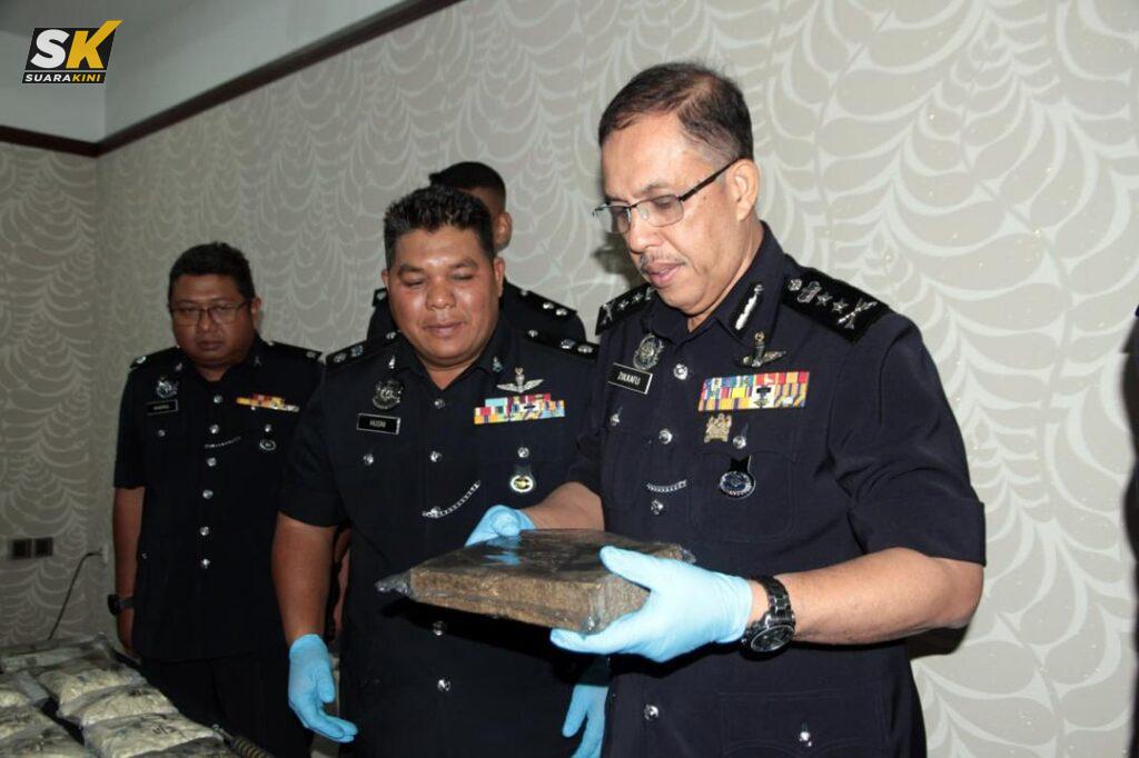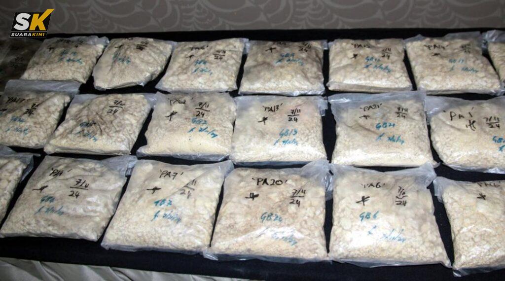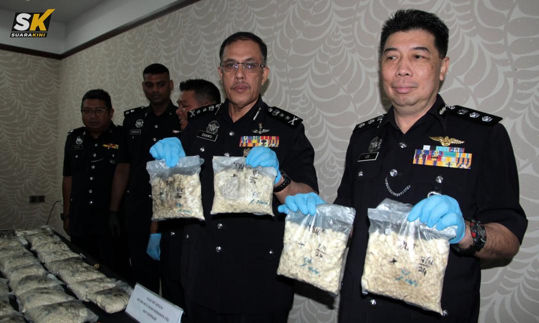 Polis turut merampas dadah jenis heroin dan ganja seberat hampir 20 kilogram dianggarkan bernilai RM200,400 dalam serbuan di sebuah rumah di Jalan St John Ipoh pada Khamis, di samping menyita dua buah kereta serta barang kemas, bernilai lebih RM105,000.