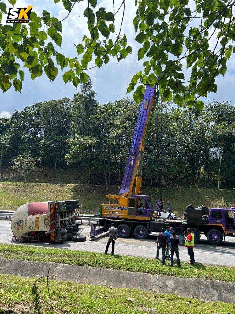 “Apabila sampai di lokasi kejadian, lori yang dipandu di lorong kiri telah hilang kawalan dan terbabas melanggar besi penghadang di tengah jalan menyebabkannya terbalik serta melintang sehingga menutup kedua-dua laluan jalan,” katanya dalam kenyataan di sini, hari ini.