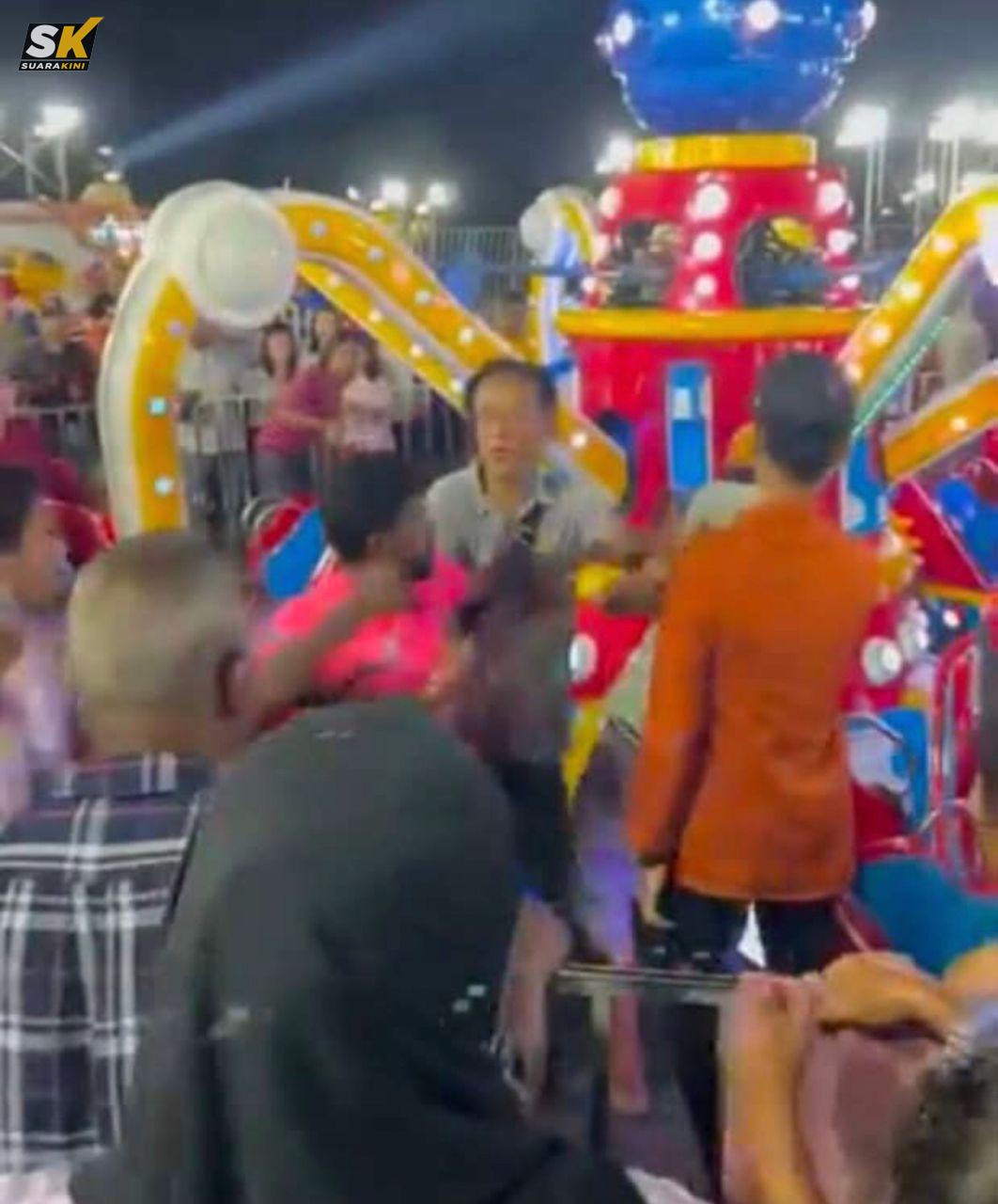 Ujarnya, video klip berdurasi 1 minit 2 saat di Facebook yang menunjukkan seorang lelaki selisih faham dengan pekerja di pesta mainan susulan anak dan isterinya terjatuh dari alat permainan.