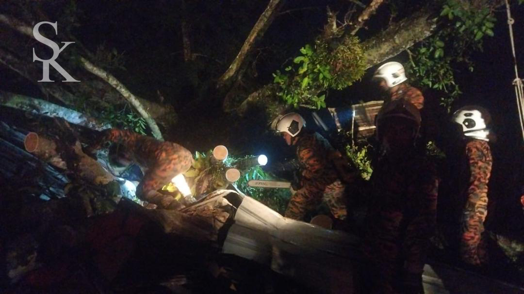 Menurutnya, kejadian berlaku ketika hujan lebat, disertai angin kencang, menyebabkan pokok berkenaan tumbang menghempap rumah kayu yang didiami enam pekerja lelaki warga Indonesia.