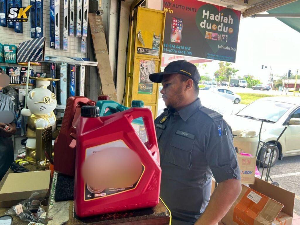 “Serbuan dilakukan hasil aduan dan maklumat oleh wakil pemilik cap dagang yang mengadu terdapatnya penjualan cecair penyelenggaraan kenderaan berjenama terkenal yang disyaki tiruan di premis berkenaan.
