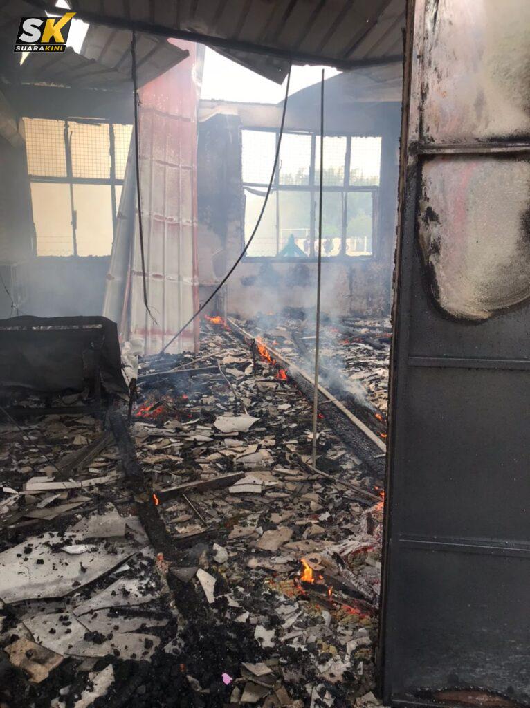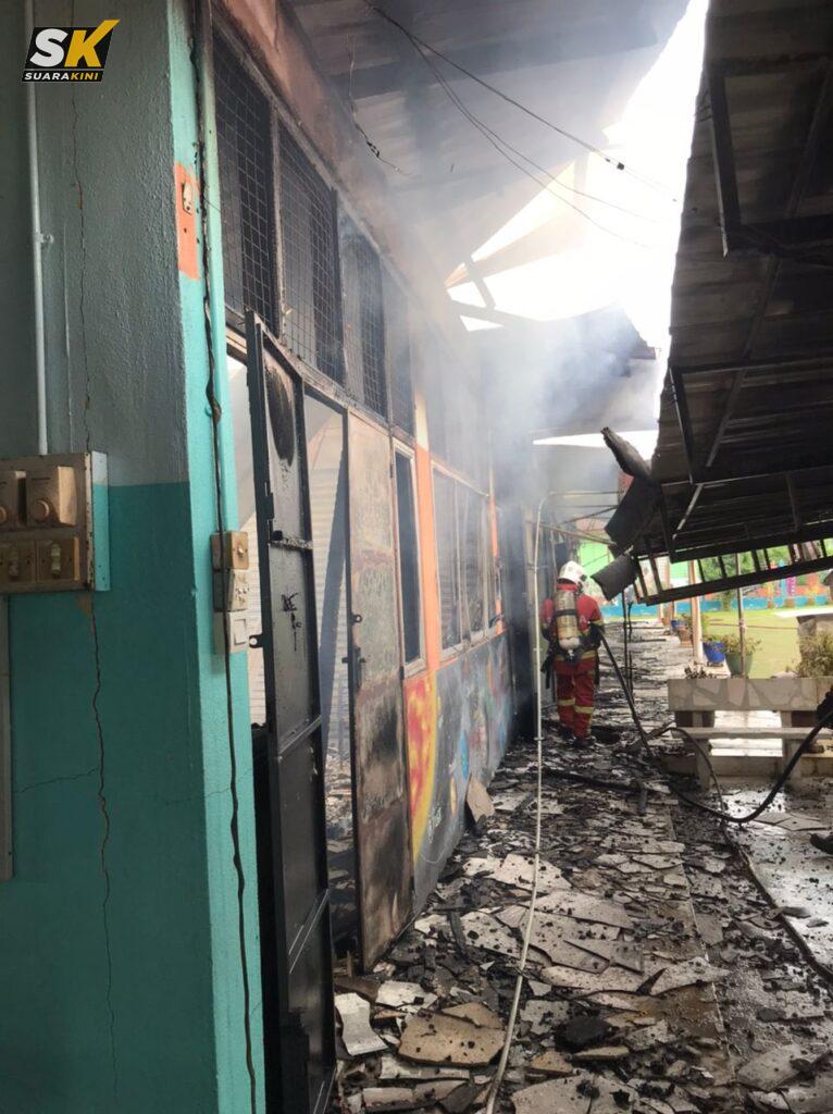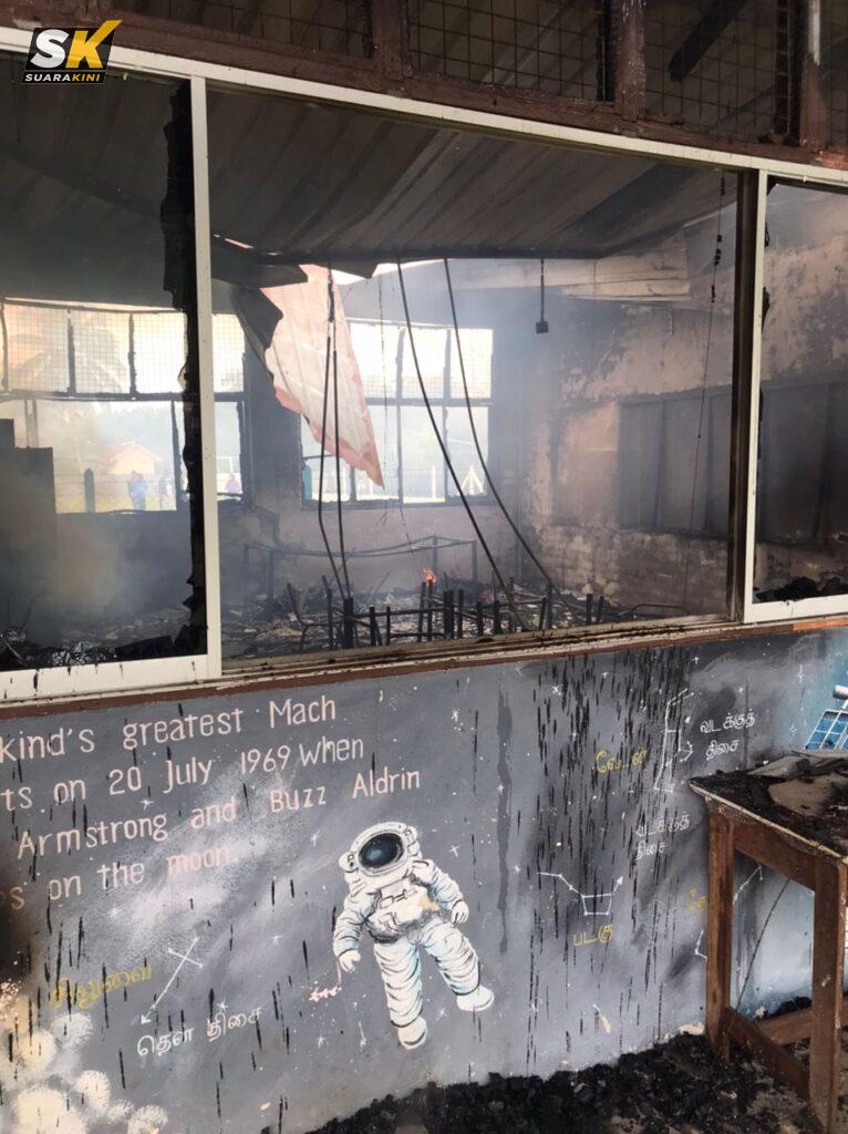 IPOH: Tiga bilik darjah, sebuah makmal sains, setor dan kantin Sekolah Jenis Kebangsaan Tamil (SJKT) Ladang Ayer Tawar, Manjung, hampir musnah dalam kebakaran, hari ini.