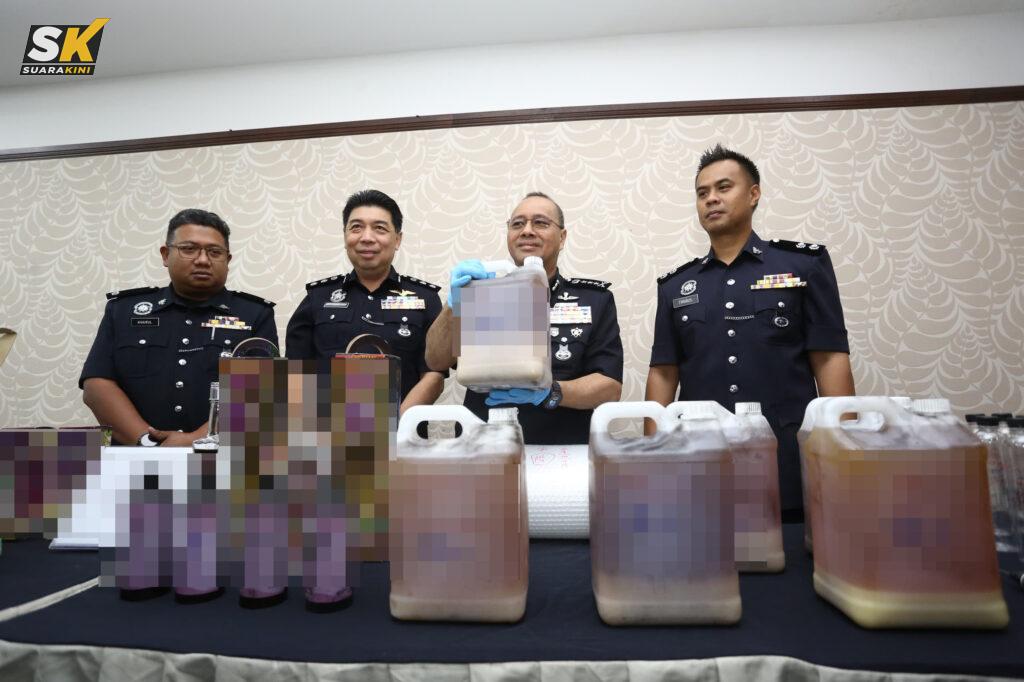 “Hasil pemeriksaan di kediaman suspek, kita telah merampas, menjumpai dan merampas enam lagi botol plastik warna putih berpenutup berisi cecair disyaki mengandungi dadah jenis Methamphetamine dengan anggaran isupadu keseluruhan lebih kurang 34,784 milimeter,” katanya.
