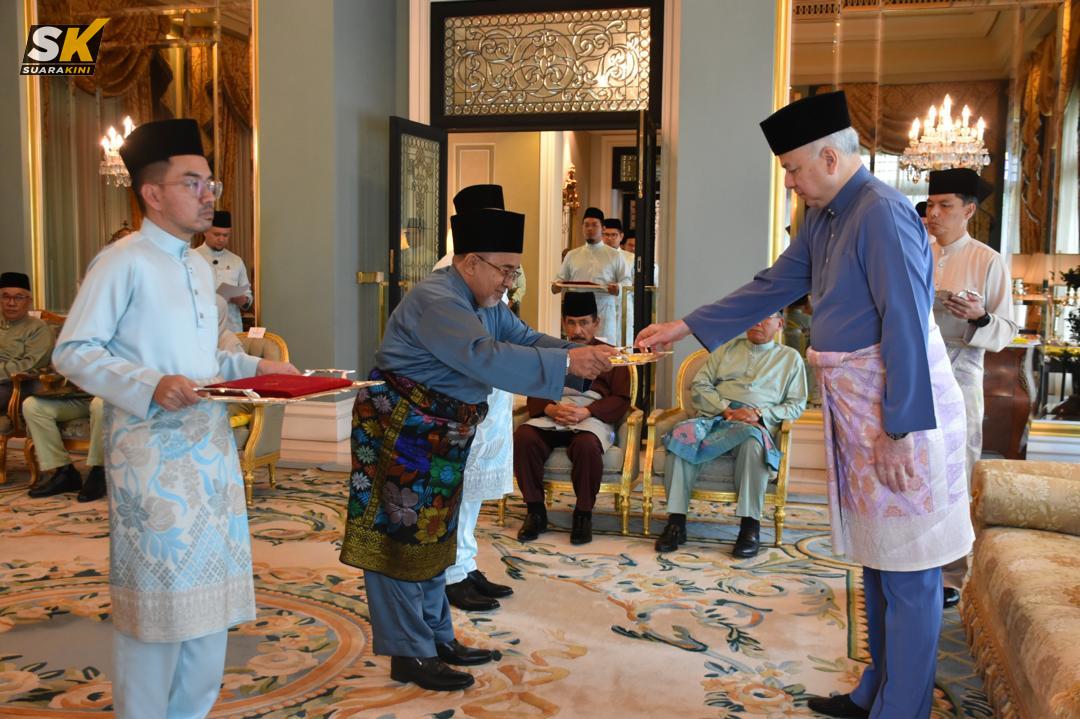 IPOH: Sultan Perak, Sultan Nazrin Muizzuddin Shah berkenan menerima bayaran zakat perniagaan berjumlah RM5.8 juta daripada lapan syarikat korporat kepada Zakat Perak Al Ridzuan (ZAPAR) di Istana Perak, Istana Kinta, di sini, hari ini.