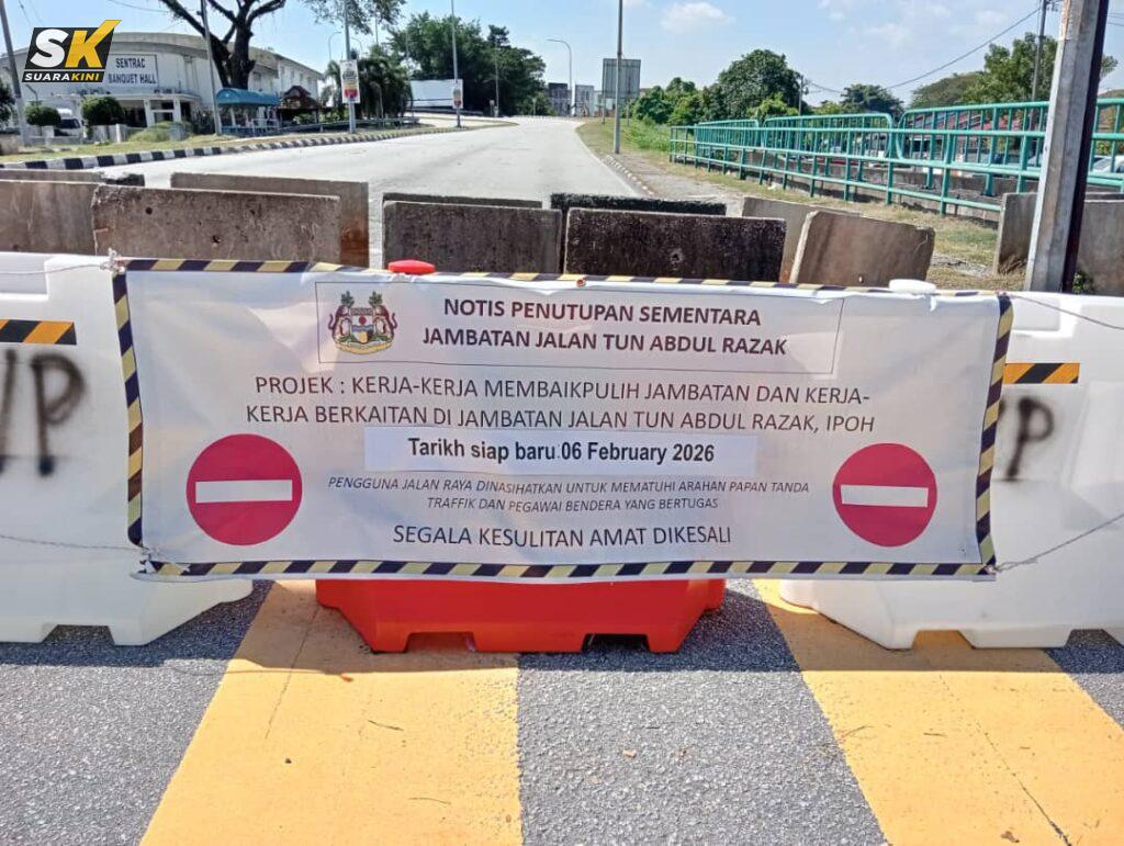 IPOH: Majlis Bandaraya Ipoh (MBI) memaklumkan bahawa tempoh pelaksanaan projek membaikpulih Jambatan Jalan Tun Abdul Razak, Ipoh telah dilanjutkan sebulan lagi daripada tarikh asal 6 Januari lalu kepada 6 Februari depan