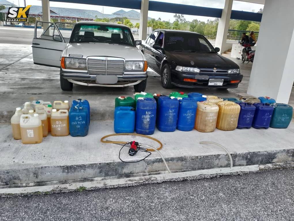 “Hasil pemeriksaan lanjut telah menemui anggaran sebanyak 650 liter cecair disyaki minyak petrol Ron 95 dan dua kenderaan pendaftaran asing.