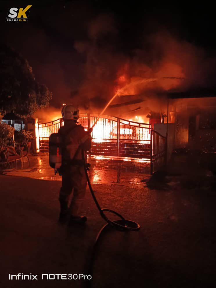 “Sebuah rumah bersama dua kenderaan iaitu Proton X50, Perodua Myvi serta motosikal jenis Yamaha Ego musnah terbakar 90 peratus.