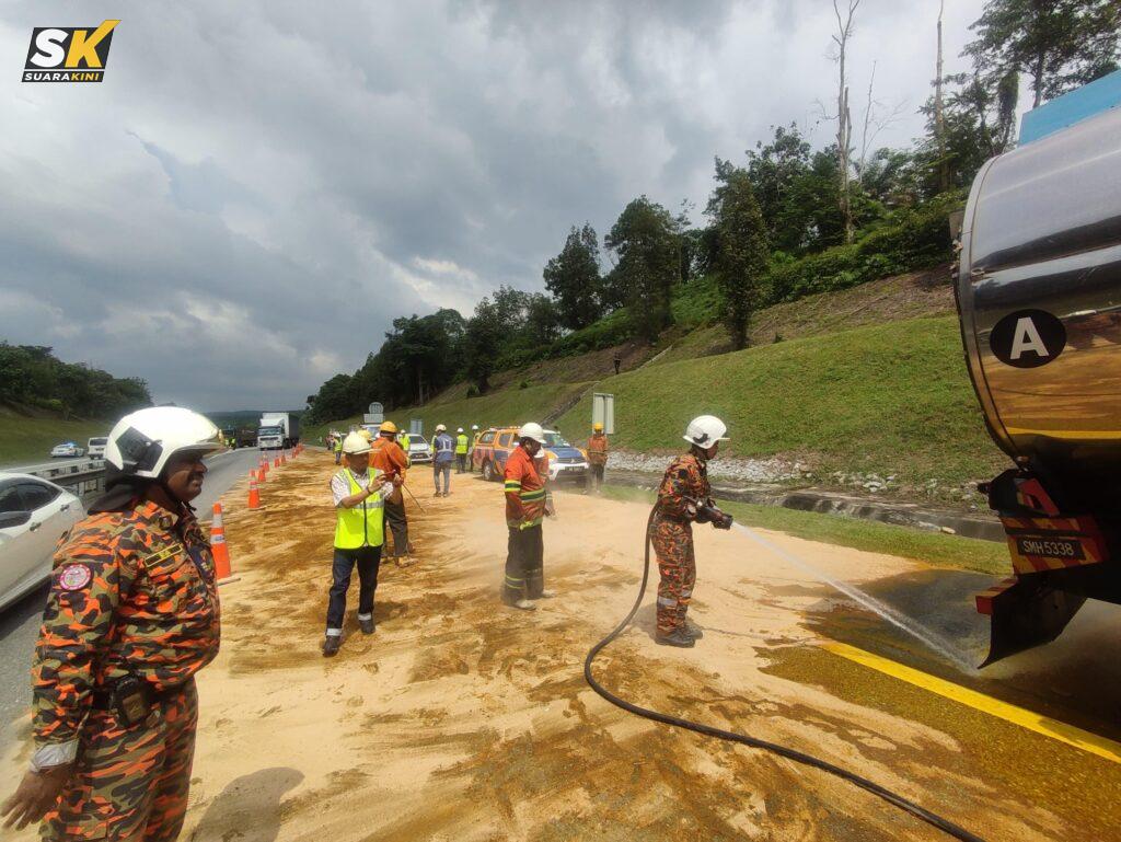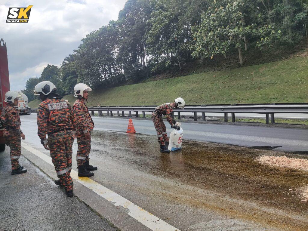 “Tumpahan minyak itu berlaku dari sebuah treler yang membawa muatan minyak sawit mentah 45 tan metrik.