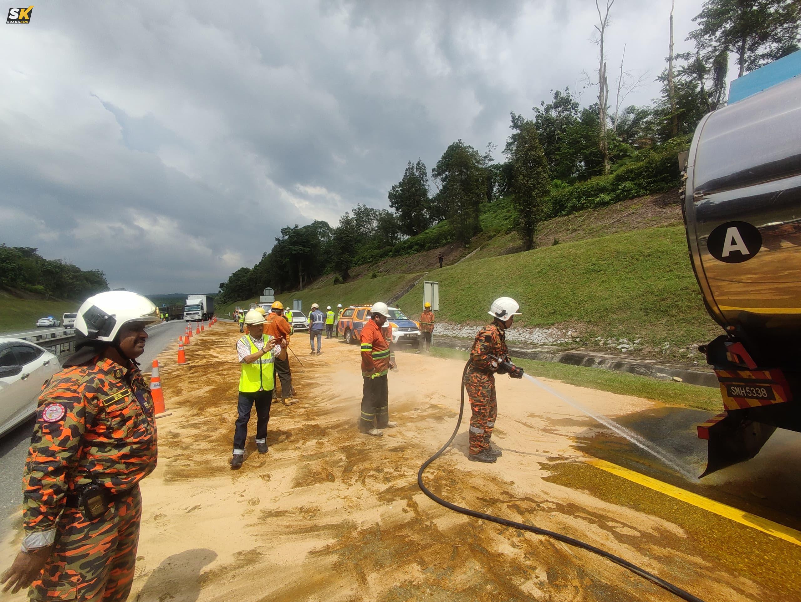“Tumpahan minyak itu berlaku dari sebuah treler yang membawa muatan minyak sawit mentah 45 tan metrik.