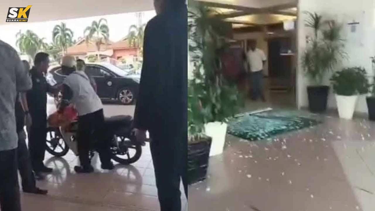 Terdahulu tular video berdurai 1 minit 30 saat, memaparkan seorang lelaki yang menunggang motosikal bertindak agresif dengan memecahkan pintu kaca bangunan MPTI.